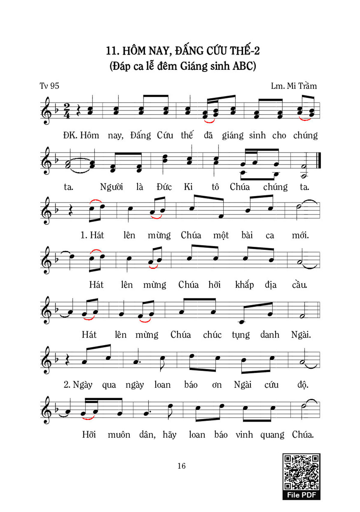Mi Trầm Hôm nay Đấng cứu thế đã giáng sinh cho chúng ta [PDF] [Sheet] [Lời H.A] [Mp4/Midi]