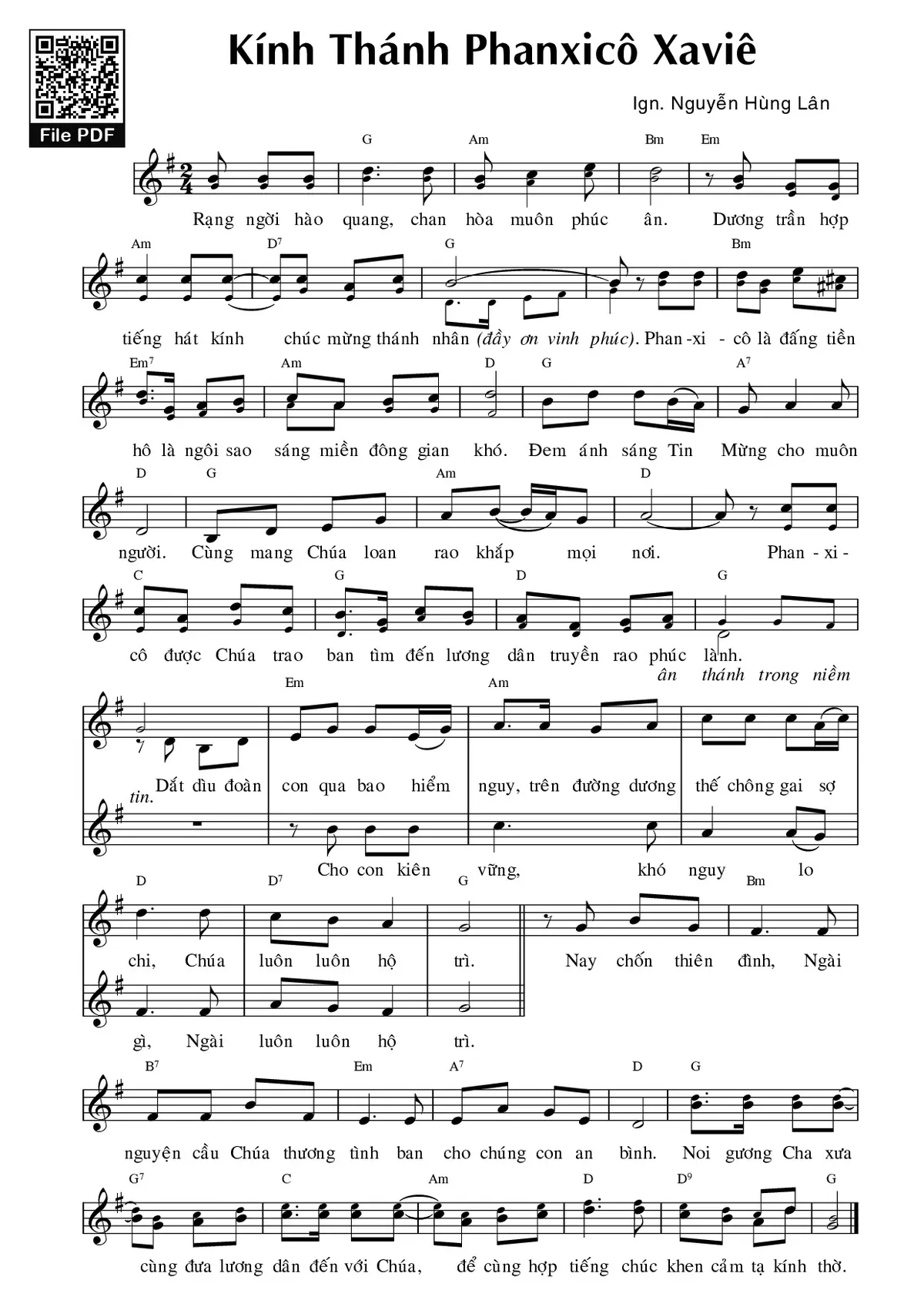 Trang 1 của Sheet nhạc PDF bài hát Kính thánh Phanxico Xavie - Nguyễn Hùng Lân