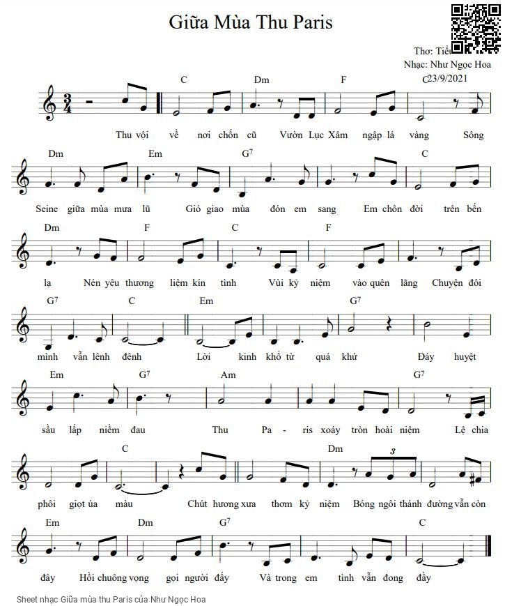 Như Ngọc Hoa Thu vội về nơi chốn cũ Vườn Lục Xâm ngập lá vàng [PDF] [Sheet] [Lời H.A] [Mp4/Midi]
