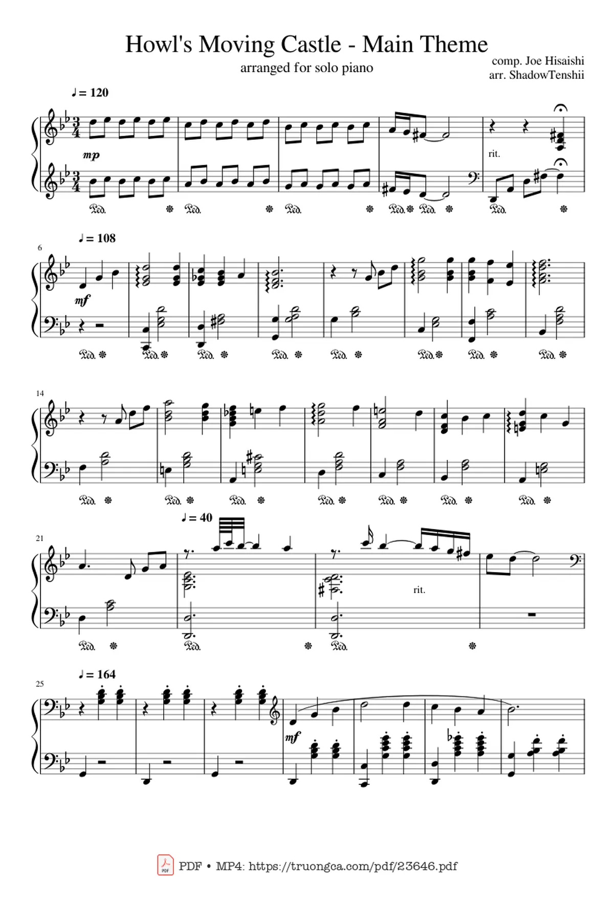 Phần đàn mẫu Howl's Moving Castle by Hisaishi - Main Theme Piano (Joe Hisaishi) được nhúng từ Youtube, Musescore hoặc link ngoài và chịu sự kiểm soát bản quyền của bên thứ ba đó, vì vậy có thể bị xóa hoặc chèn quảng cáo bất kỳ lúc nào. Nếu bạn không nghe - xem được phần đàn mẫu hát mẫu tức là đã bị Youtube/Musescore kiểm soát.