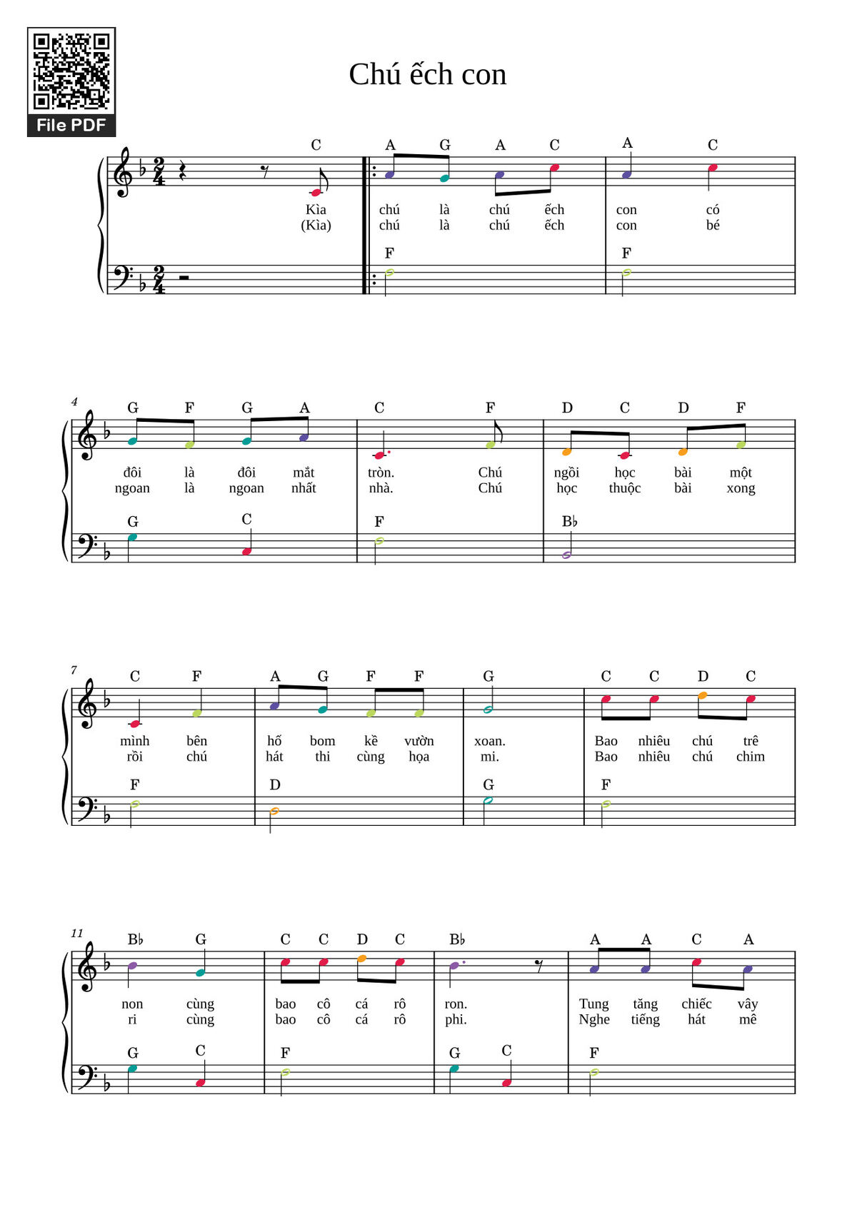 🎹 Phan Nhân Kìa chú là chú ếch con có hai là hai mắt tròn [PDF] [Sheet] [Lời H.A] [Mp4/Midi]