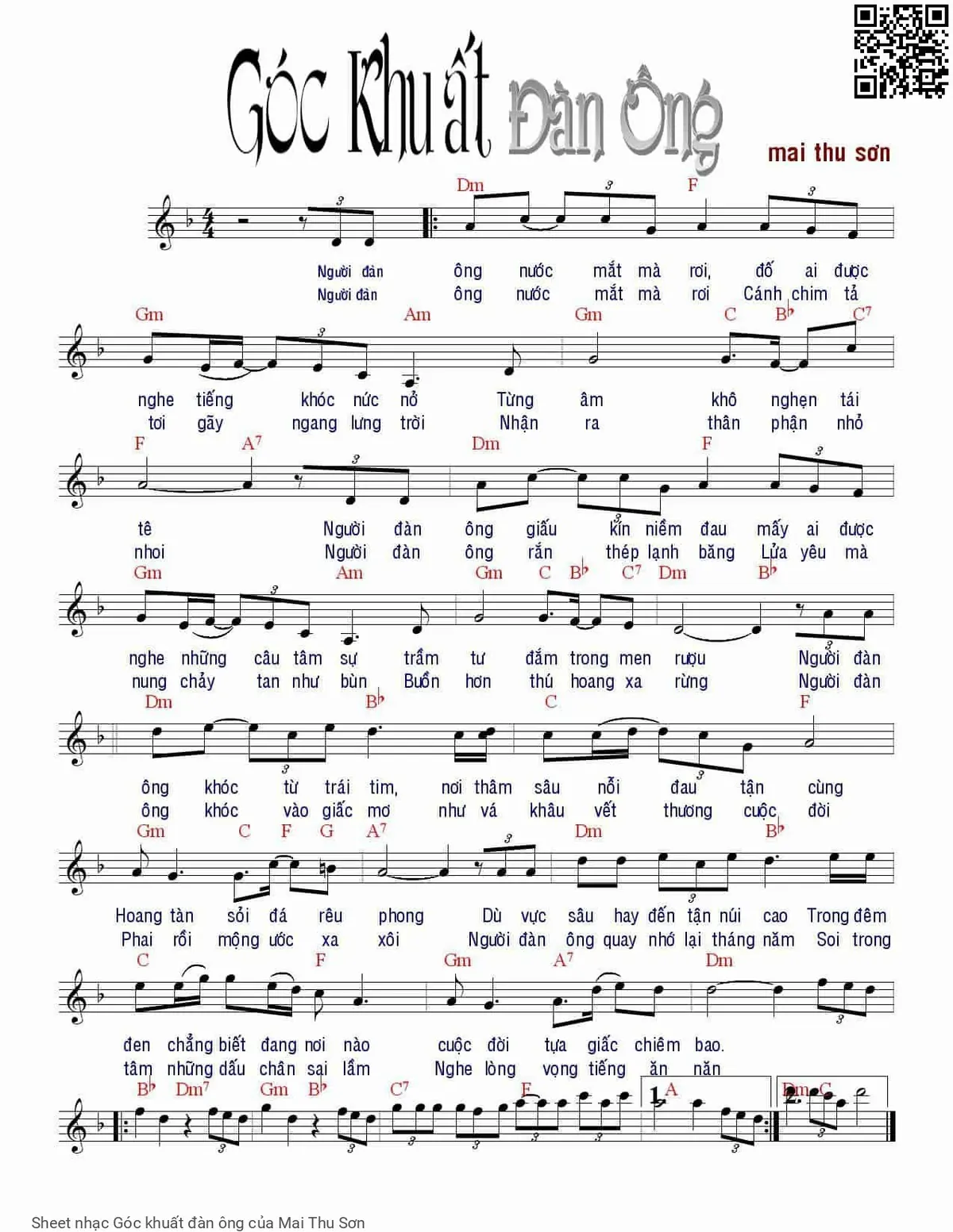 Mai Thu Sơn Người đàn ông nước mắt mà rơi Đố ai được nghe tiếng khóc nức nở [PDF] [Sheet] [Lời H.A] [Mp4/Midi]