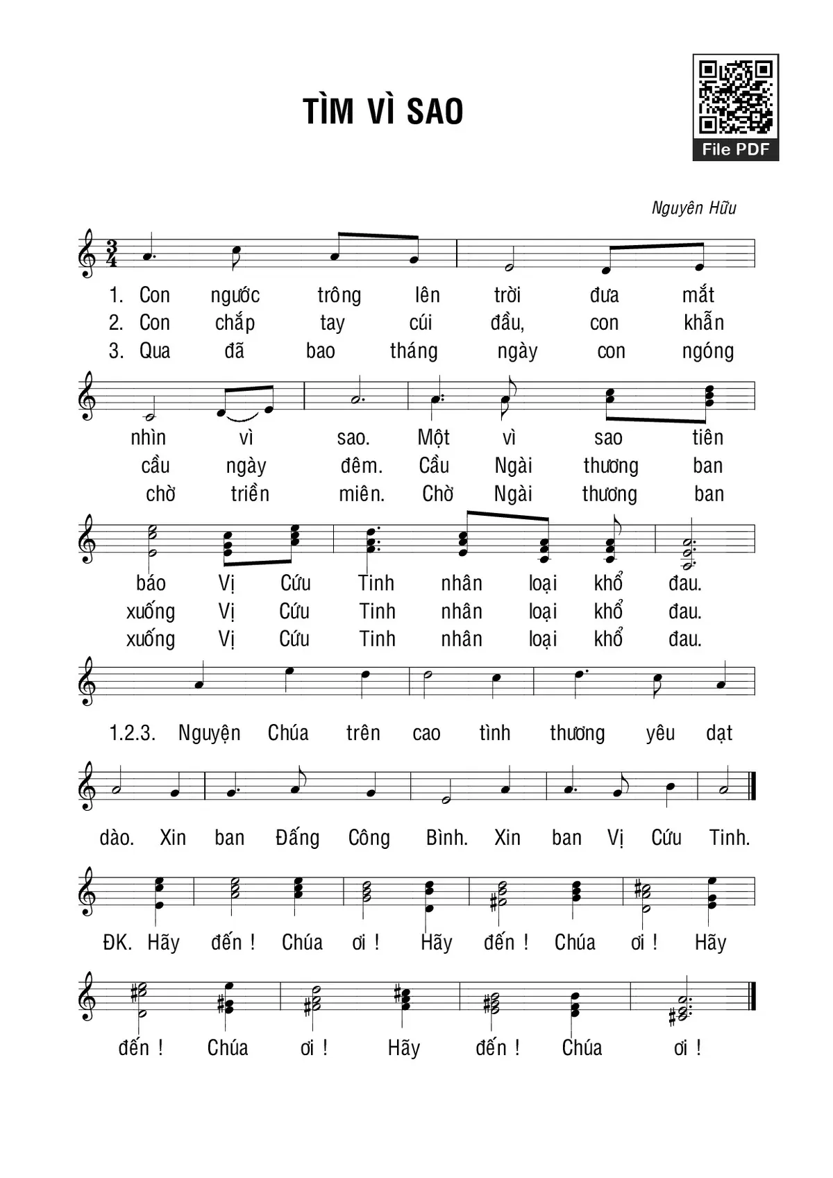 Nguyên Hữu Con ngước trông lên trời đưa mắt tìm vì sao [PDF] [Sheet] [Lời H.A] [Mp4/Midi]