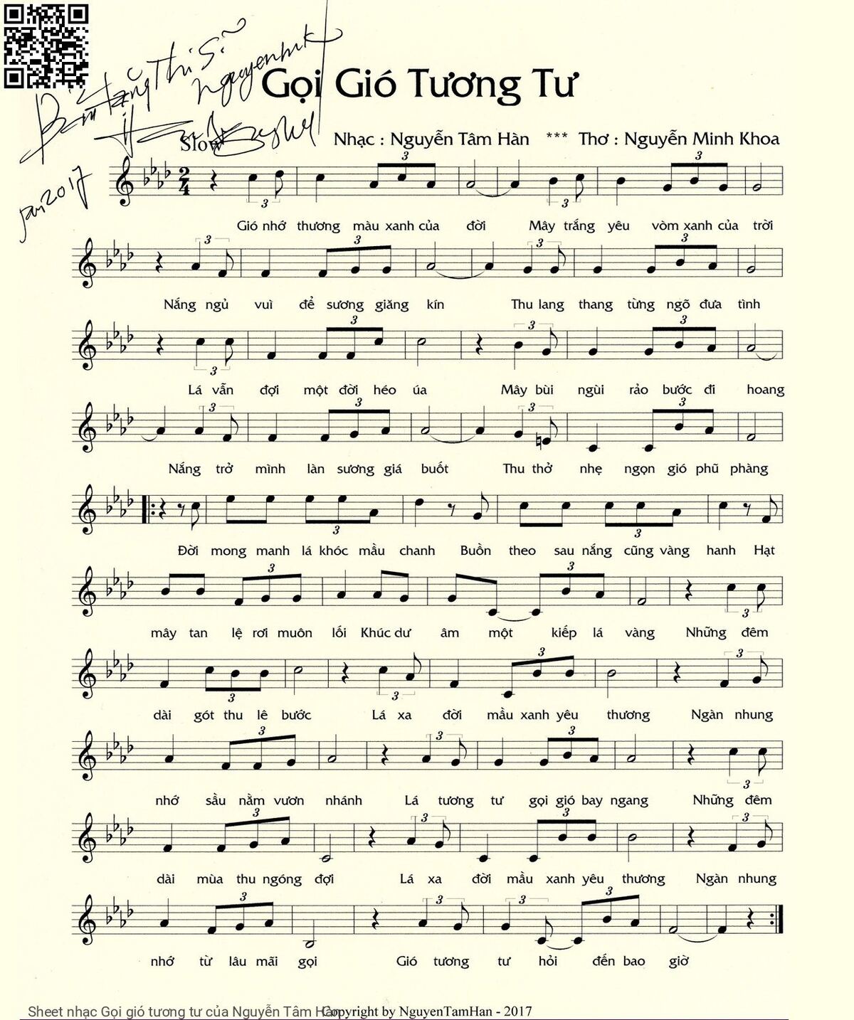 Chọn nút dấu + để tăng tông lên nửa cung, nút dấu - để giảm tông xuống nửa cung. Rê chuột vào hợp âm để xem các thế bấm hợp âm của bài hát Gọi gió tương tư.