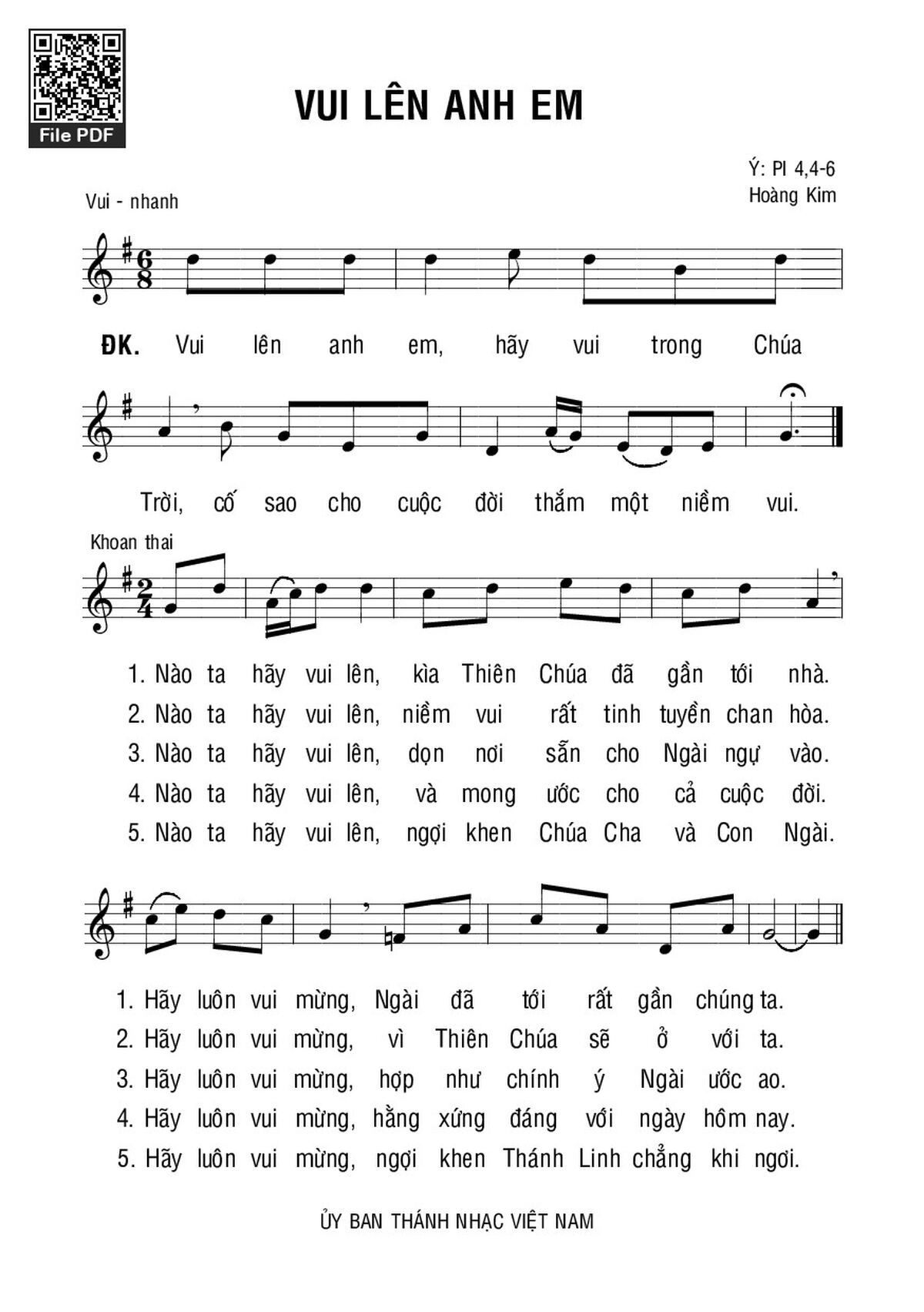 Điệp khúc. Vui lên anh em, hãy vui trong Chúa Trời, cố sao cho cuộc đời thắm một niềm vui.