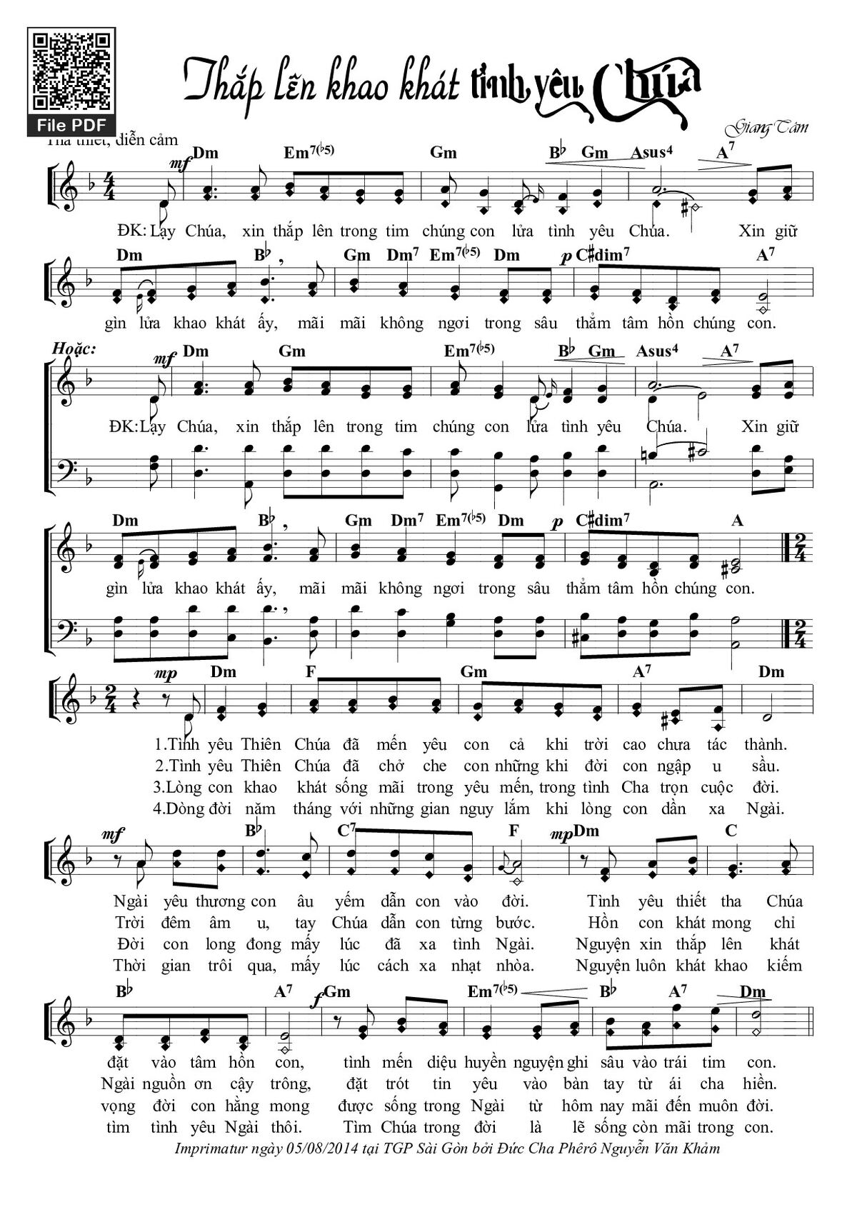 Điệp khúc: Lạy Chúa, xin thắp lên trong tim chúng con lửa tình yêu Chúa. Xin giữ gìn lửa khao khát ấy, mãi mãi không ngơi trong sâu thẳm tâm hồn chúng con.