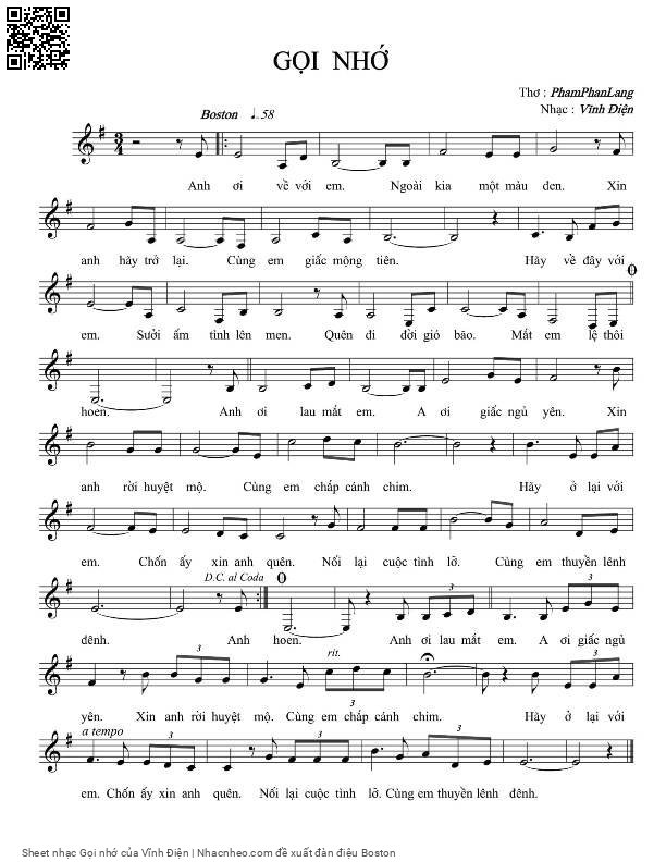 Phần nghe hát Gọi nhớ (Vĩnh Điện) được nhúng từ Youtube, Musescore hoặc link ngoài và chịu sự kiểm soát bản quyền của bên thứ ba đó, vì vậy có thể bị xóa hoặc chèn quảng cáo bất kỳ lúc nào. Nếu bạn không nghe - xem được ca sĩ hát tức là đã bị Youtube hoặc Musescore kiểm soát.