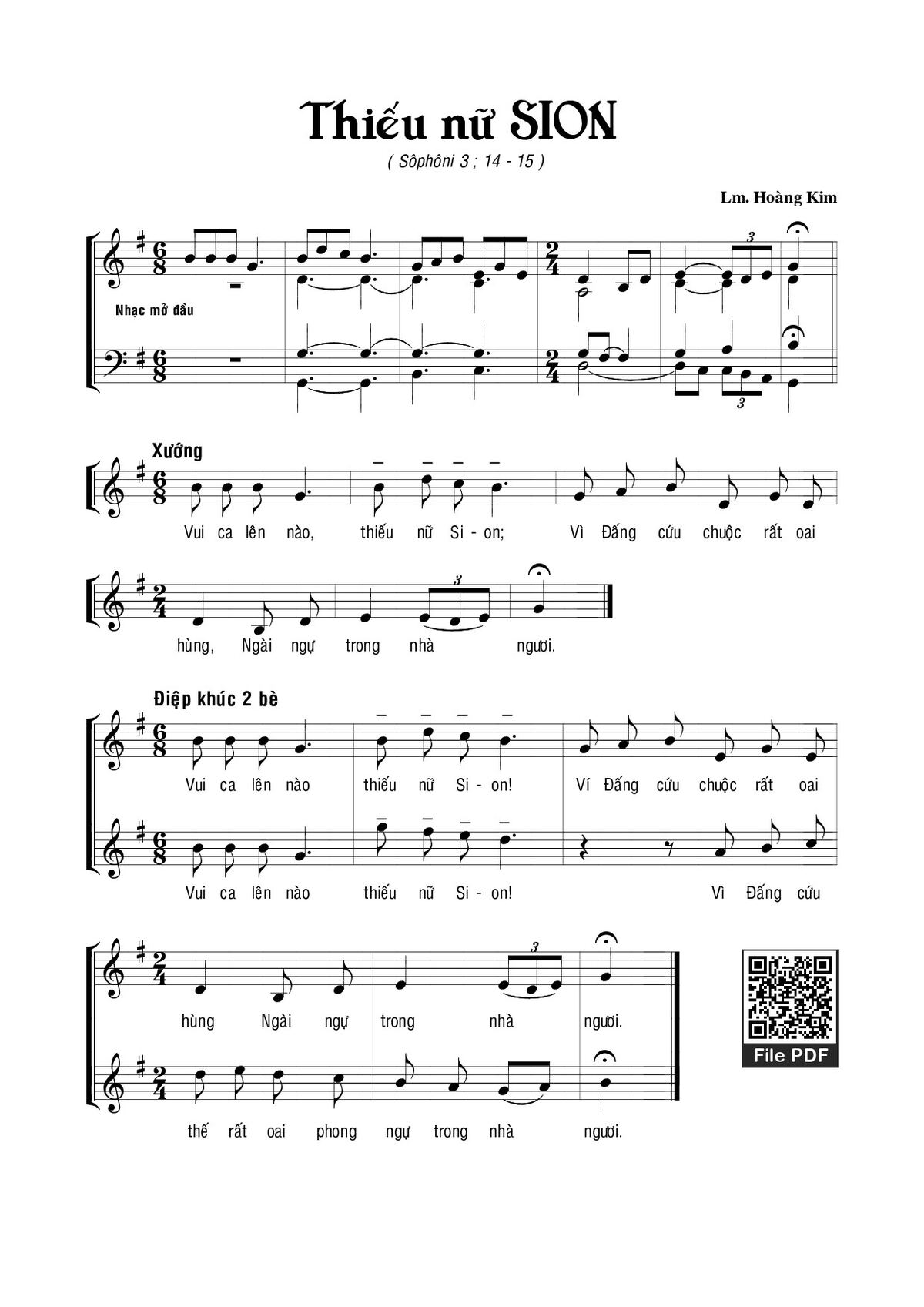 Điệp khúc: Vui ca lên nào, thiếu nữ Si-on; vì Đấng cứu chuộc rất oai hùng Ngài ngự trong nhà ngươi.