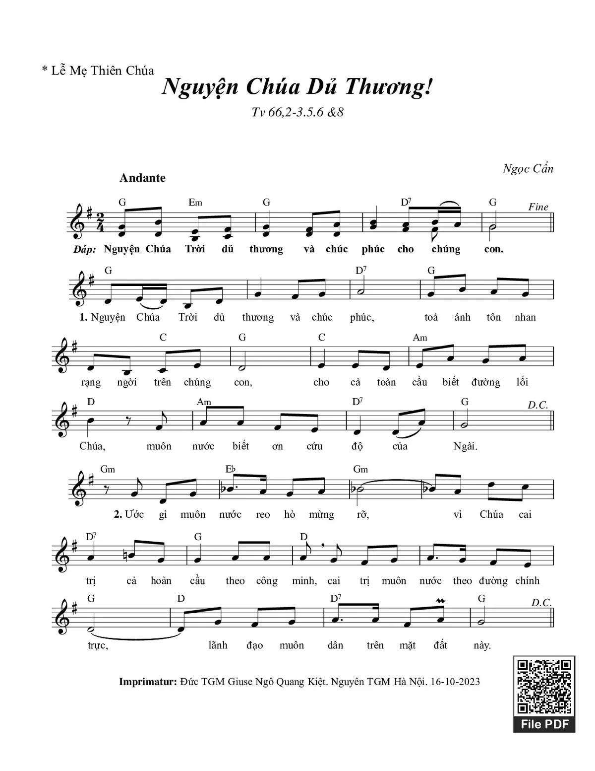 Ngọc Cẩn Nguyện Chúa Trời dủ thương và chúc phúc cho chúng con [PDF] [Sheet] [Lời H.A] [Mp4/Midi]