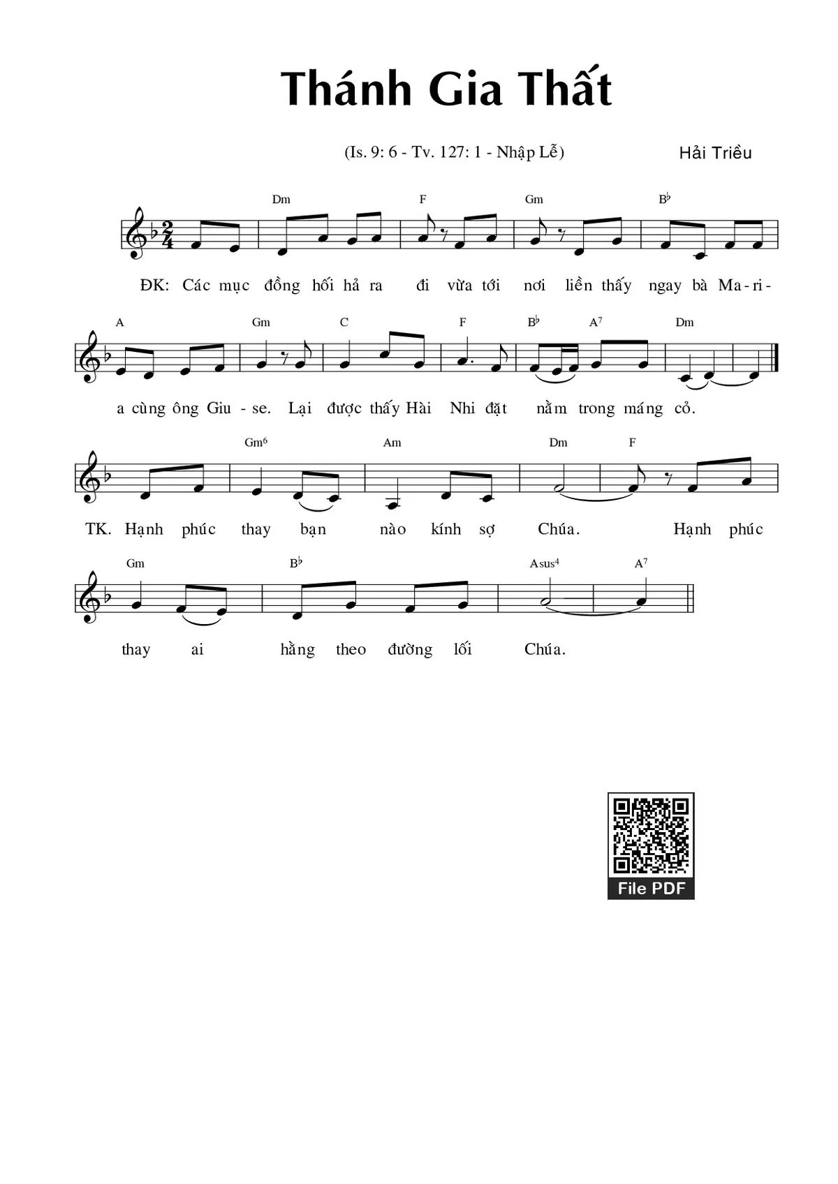 Chọn nút dấu + để tăng tông lên nửa cung, nút dấu - để giảm tông xuống nửa cung. Rê chuột vào hợp âm để xem các thế bấm hợp âm của bài hát Thánh Gia Thất.