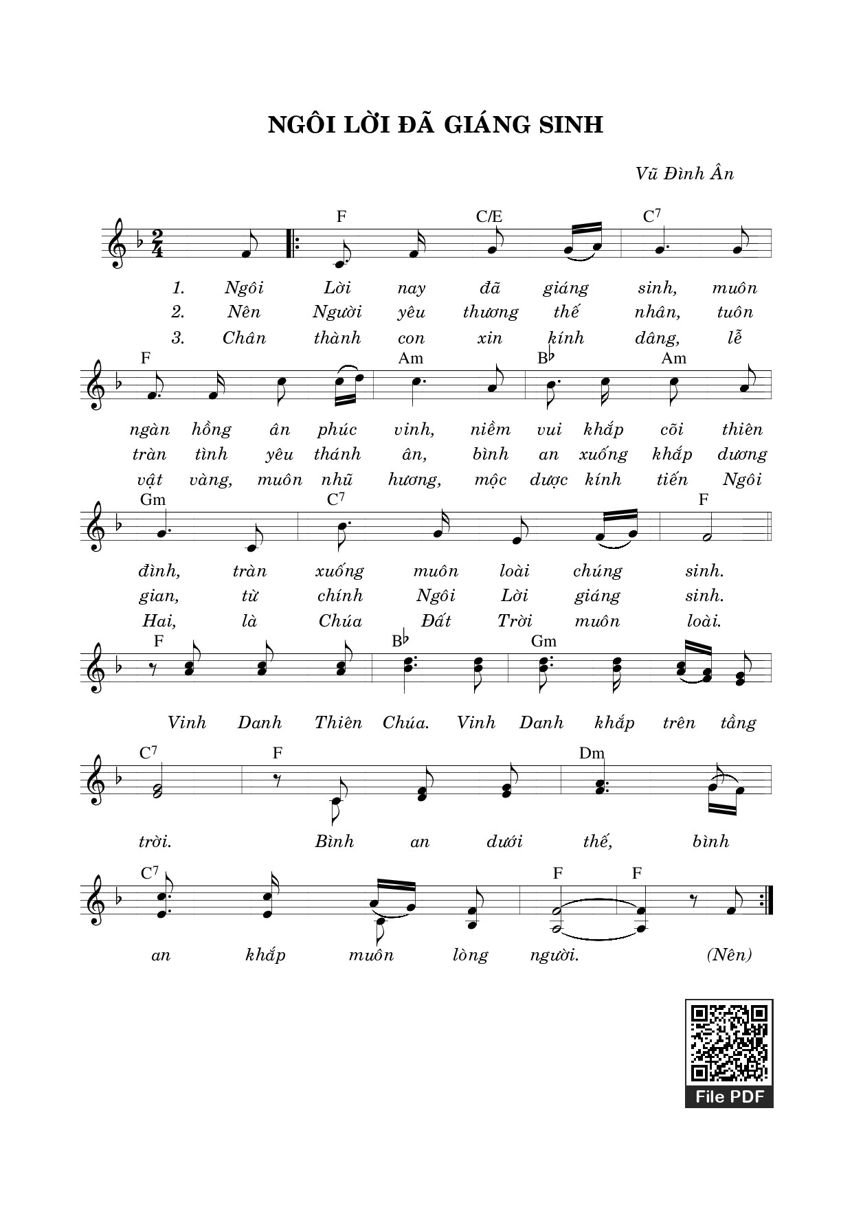 Vũ Đình Ân Kết Lễ Mùa Giáng Sinh Ngôi Lời nay đã giáng sinh [PDF] [Sheet] [Lời H.A] [Mp4/Midi]