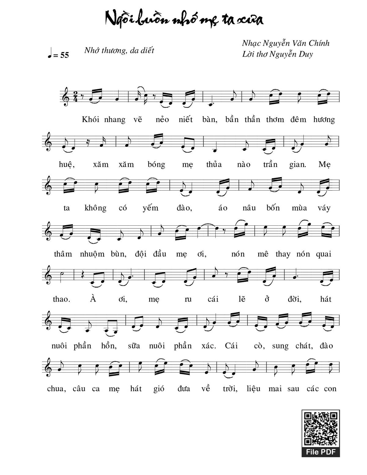Các sheet PDF tương tự Ngồi buồn nhớ mẹ ta xưa: