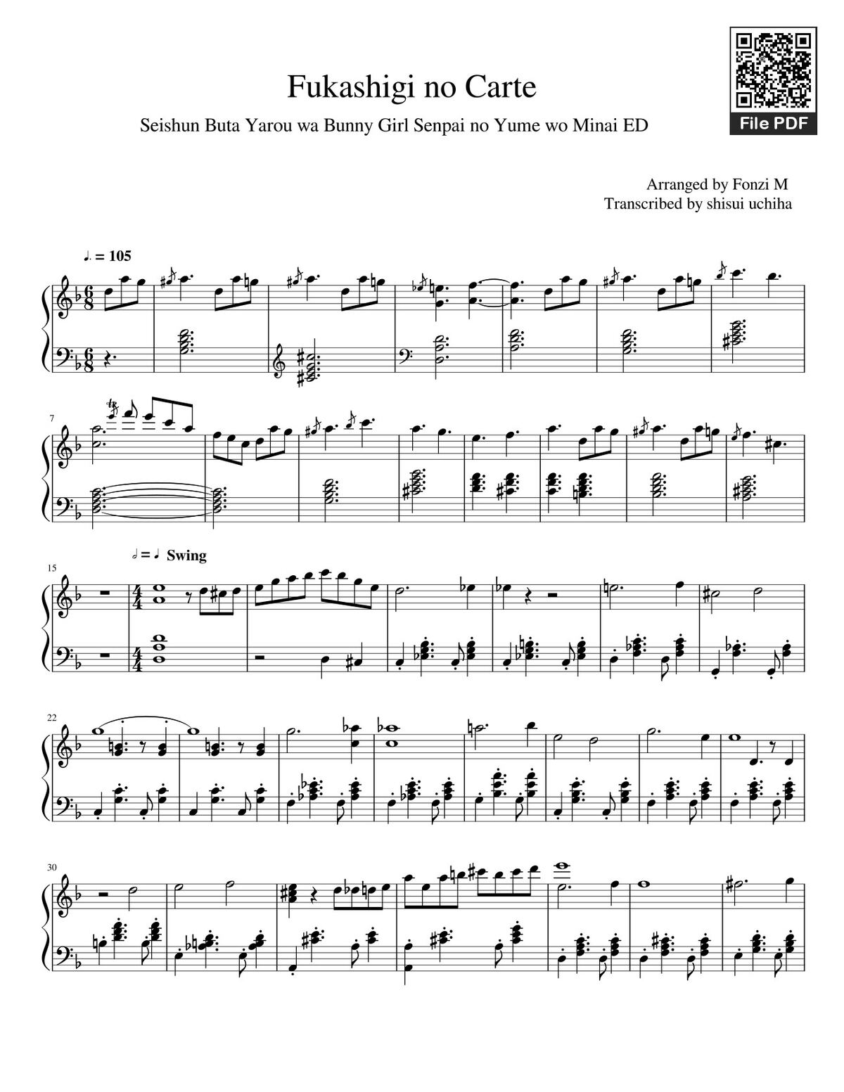 Arranged by Fonzi M Transcribed by shisui uchiha