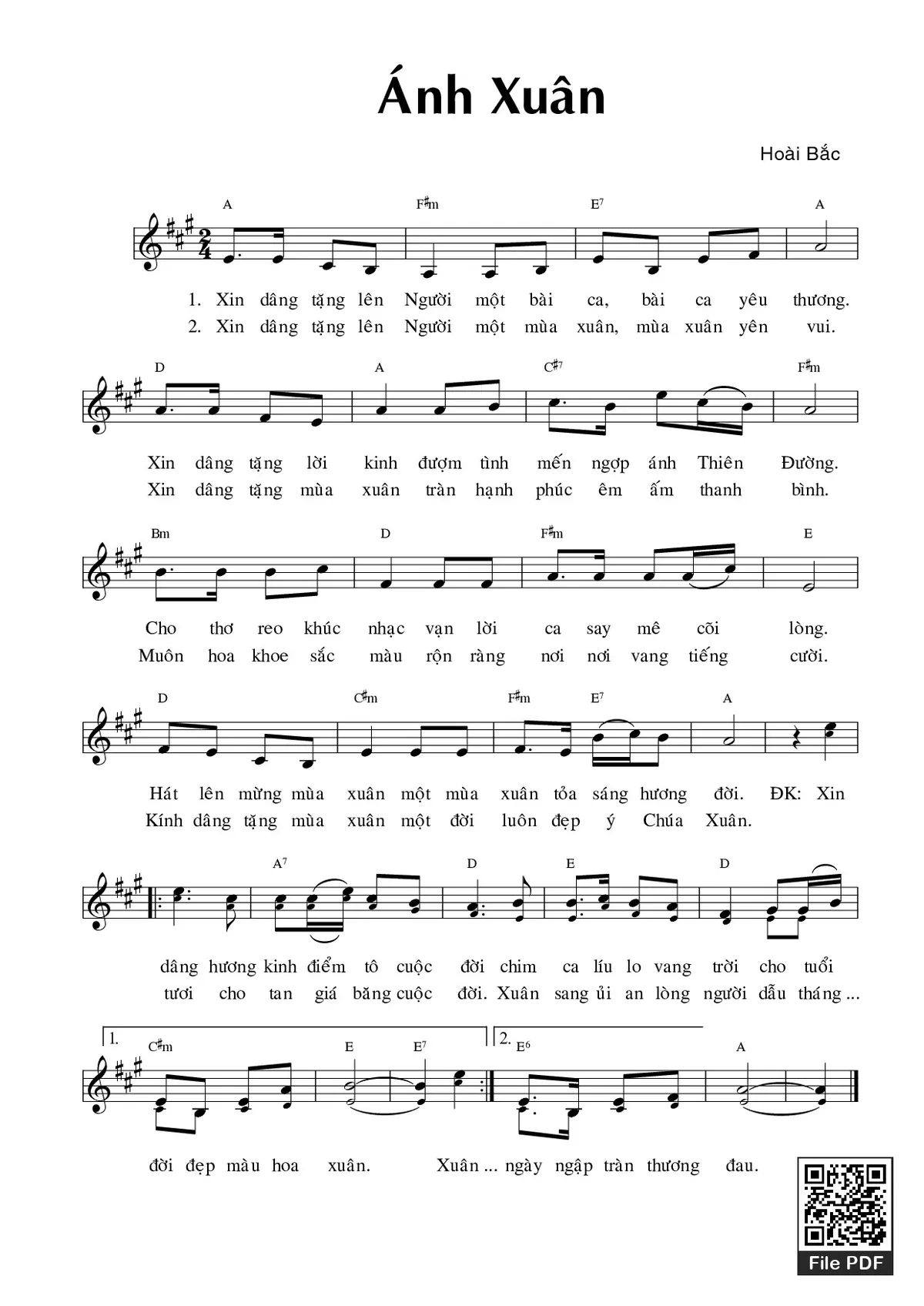 Trang 1 của Sheet nhạc PDF bài hát Ánh xuân - Hoài Bắc