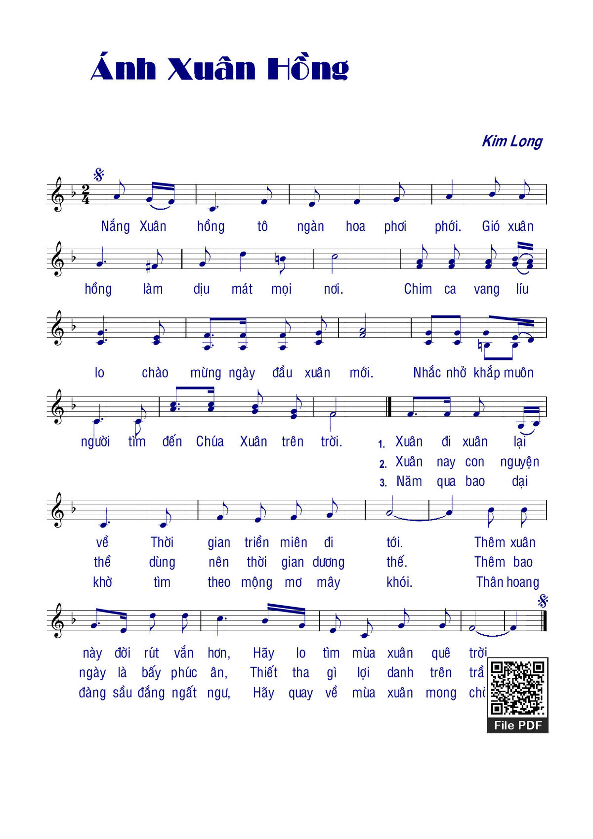 Trang 1 của Sheet nhạc PDF bài hát Ánh xuân hồng - Kim Long