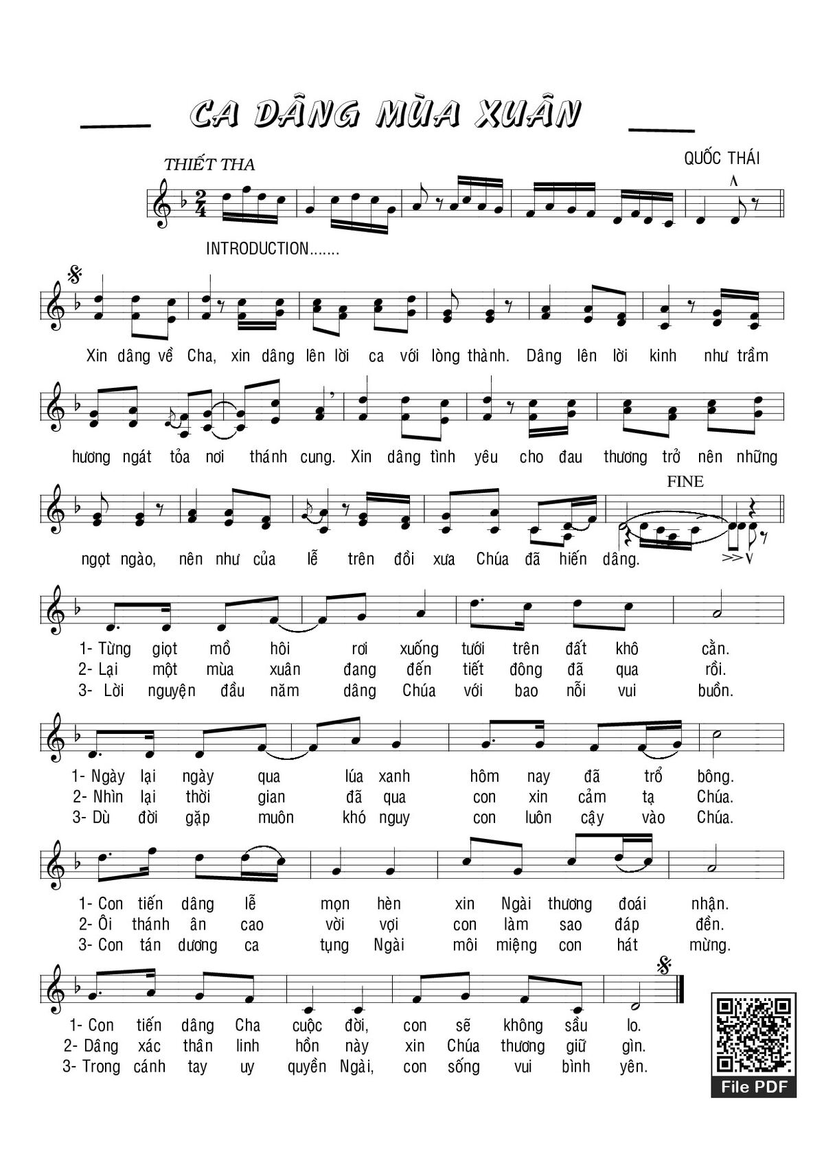 Trang 1 của Sheet nhạc PDF bài hát Ca dâng mùa xuân - Quốc Thái