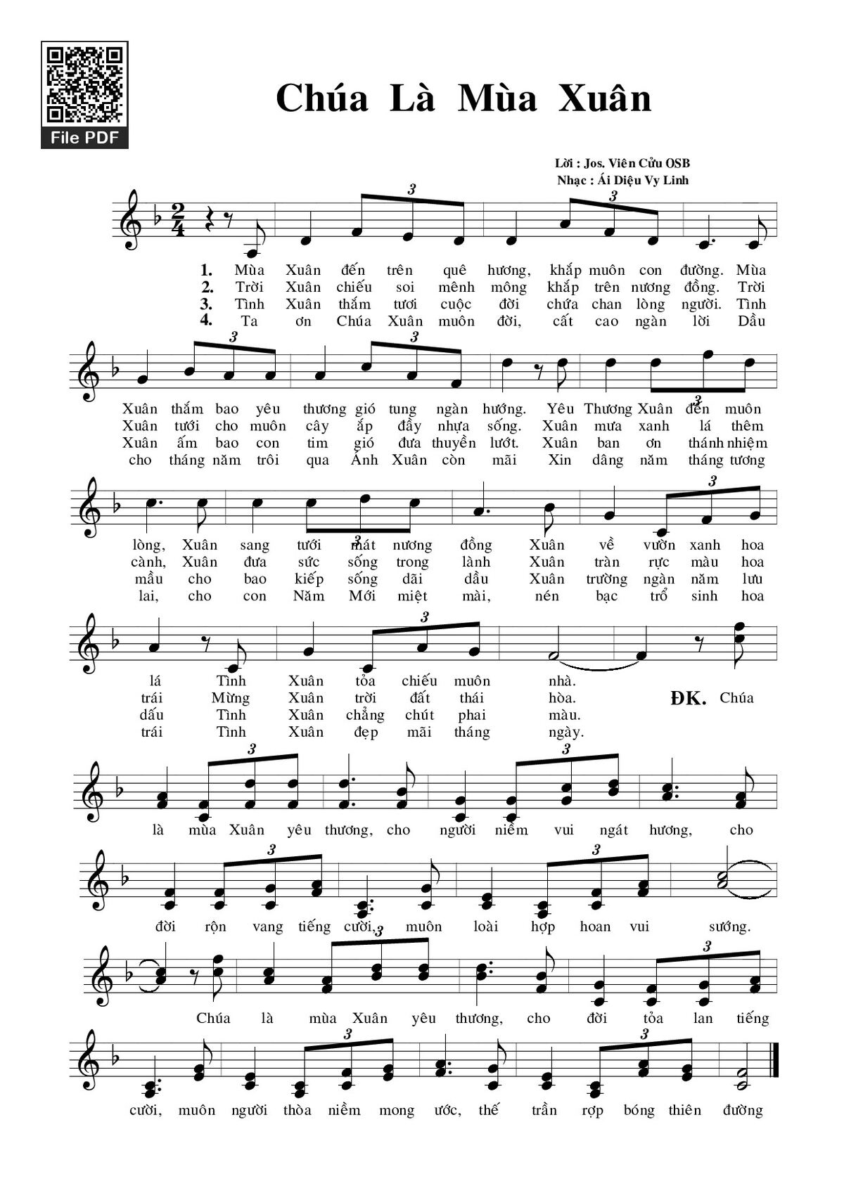 Trang 1 của Sheet nhạc PDF bài hát Chúa là mùa xuân - Ái Diệu Vy Linh