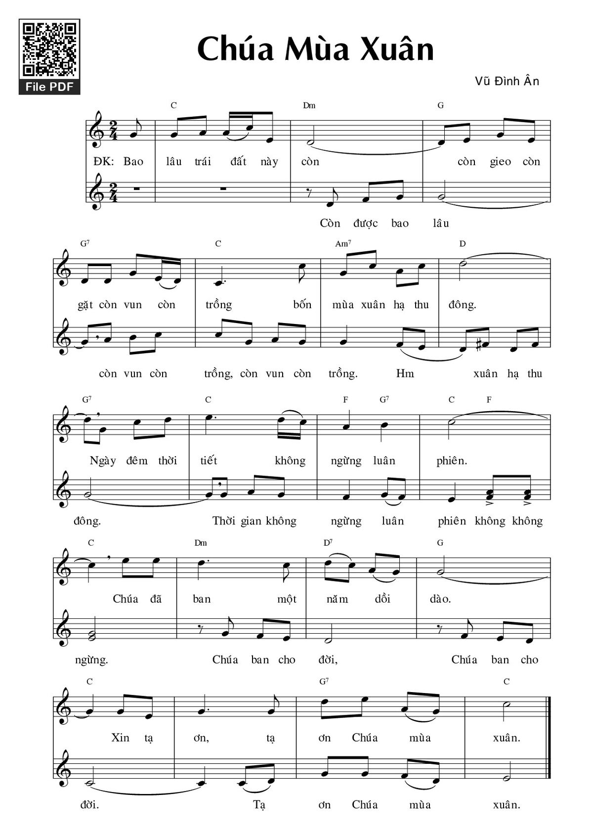 Sheet Chúa mùa xuân PDF (Vũ Đình Ân), hợp âm