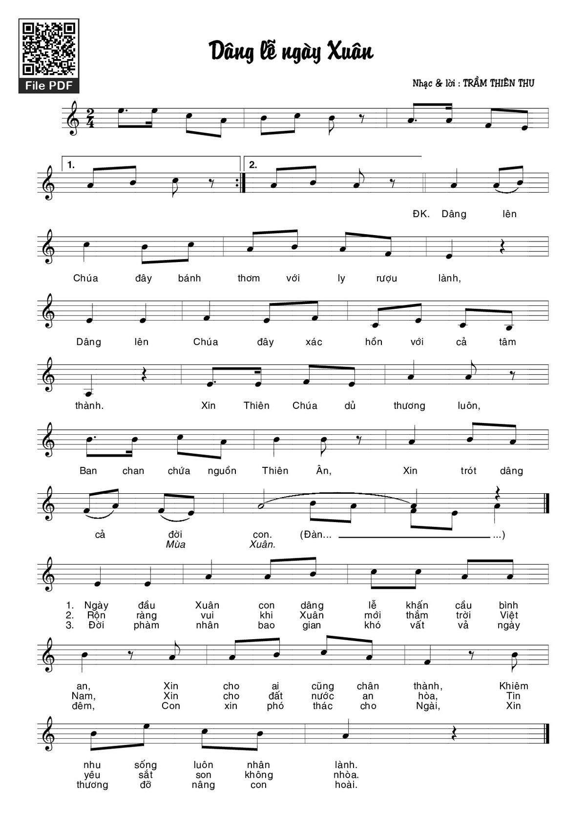 Sheet Dâng lễ ngày xuân PDF (Trầm Thiên Thu), hợp âm
