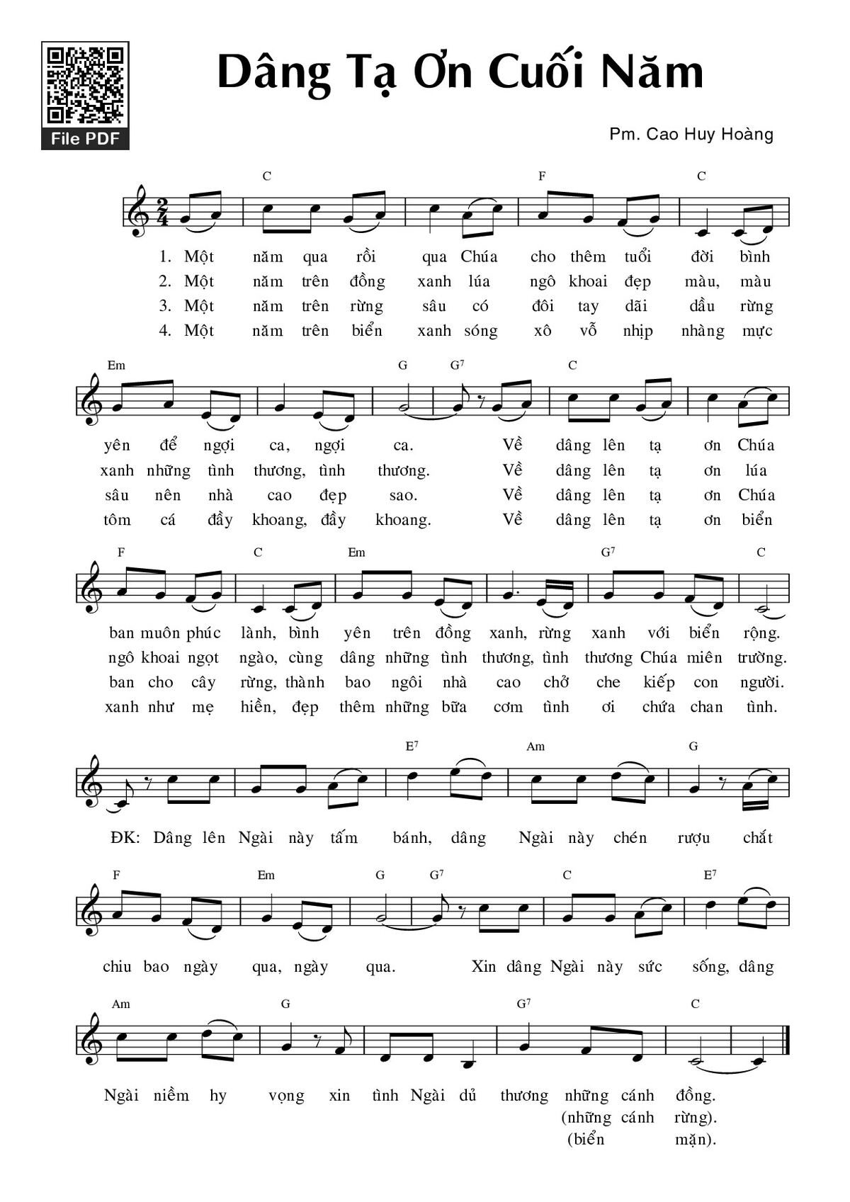 Trang 1 của Sheet nhạc PDF bài hát Dâng tạ ơn cuối năm - Cao Huy Hoàng