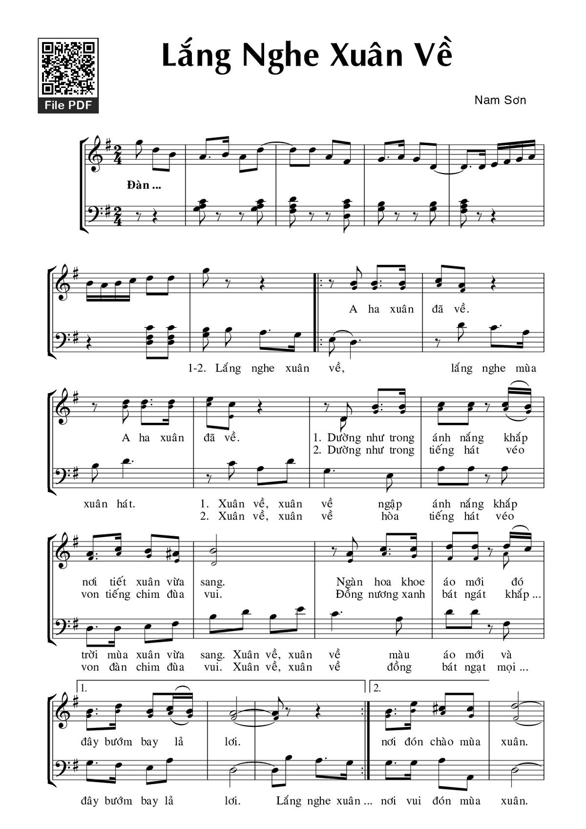 Trang 1 của Sheet nhạc PDF bài hát Lắng nghe xuân về - Nam Sơn