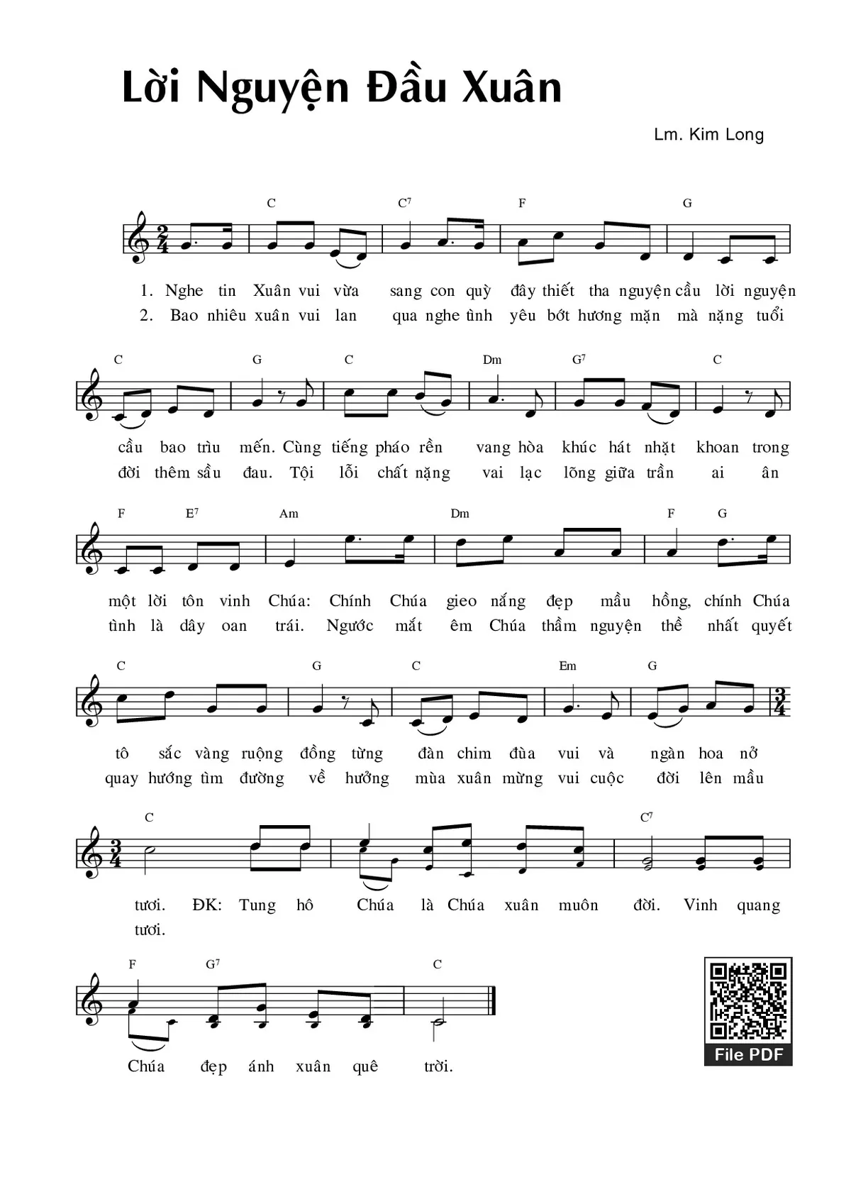Sheet Lời nguyện đầu xuân PDF (Kim Long), hợp âm