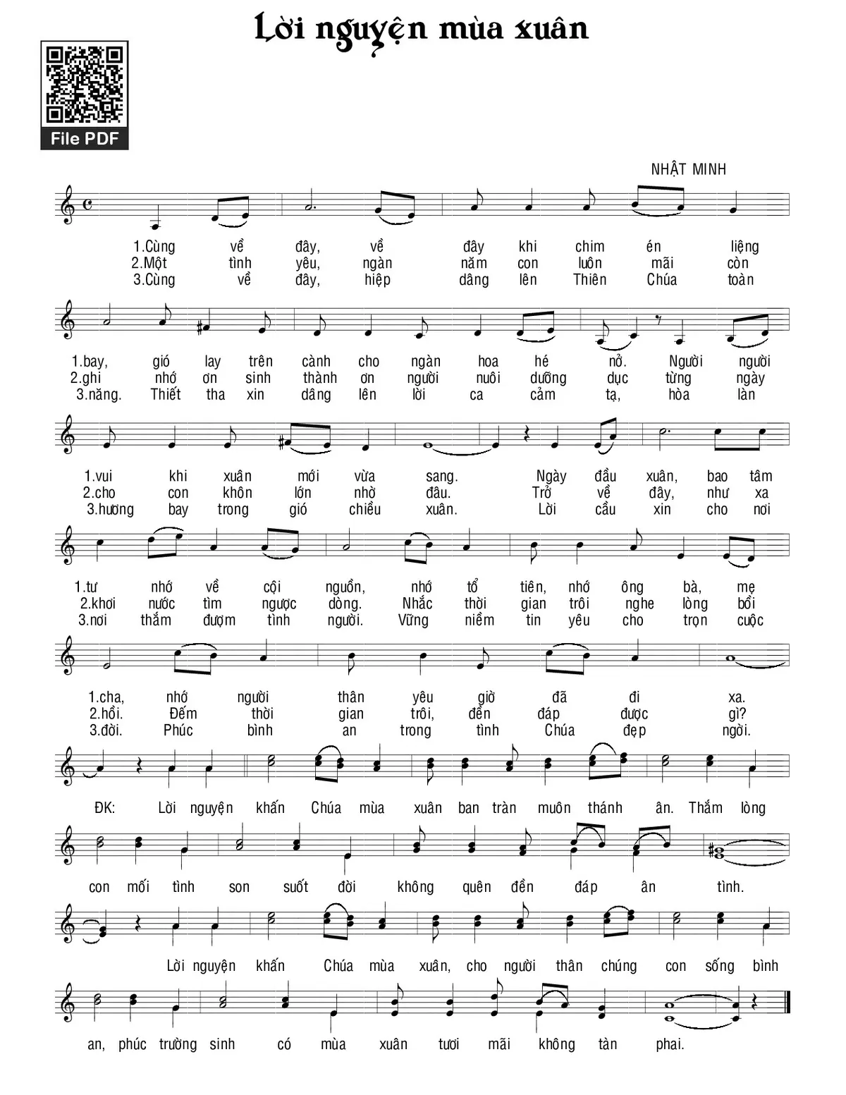 Trang 1 của Sheet nhạc PDF bài hát Lời nguyện mùa xuân - Nhật Minh
