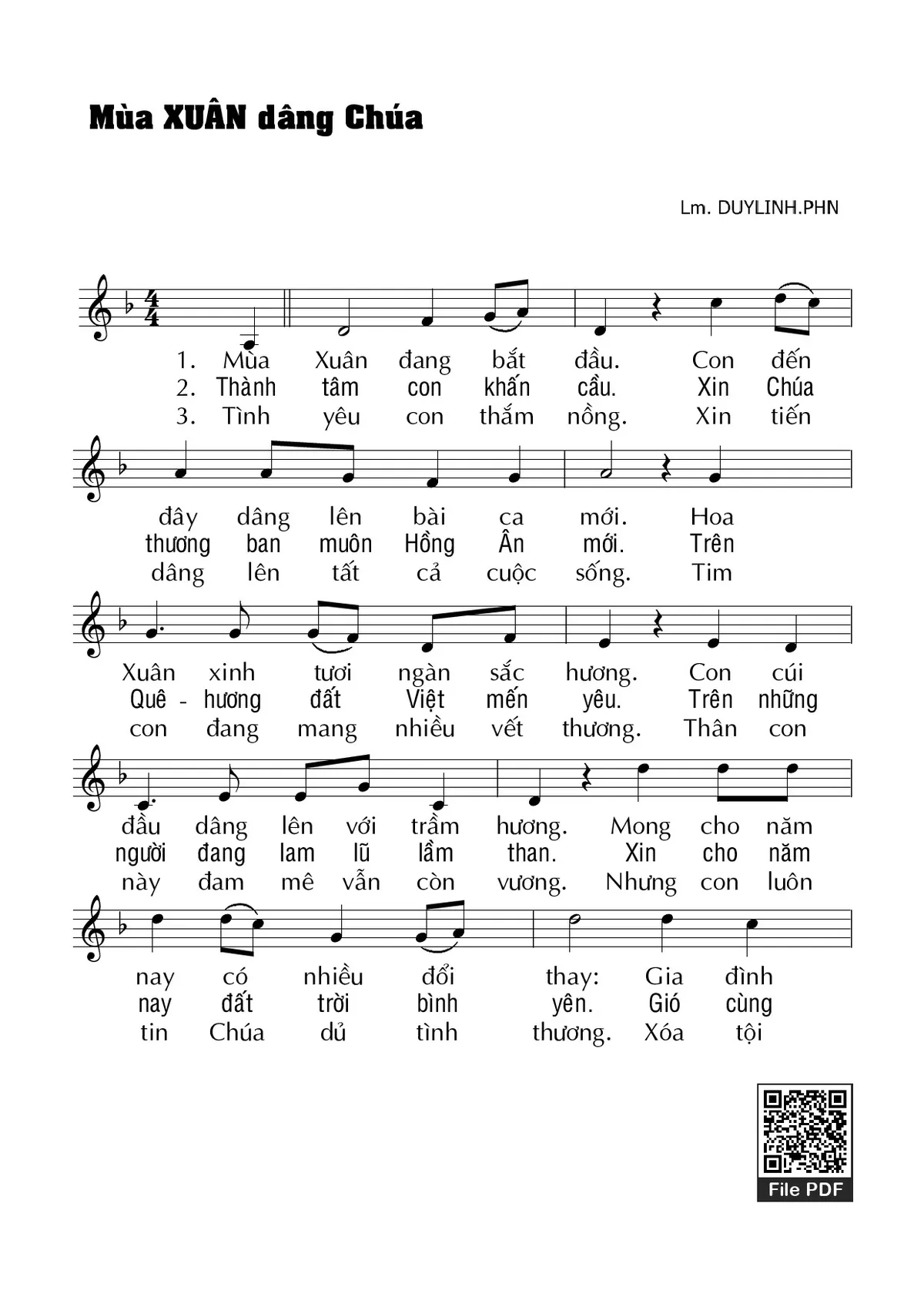 Trang 1 của Sheet nhạc PDF bài hát Mùa xuân dâng Chúa - Duy Linh PHN