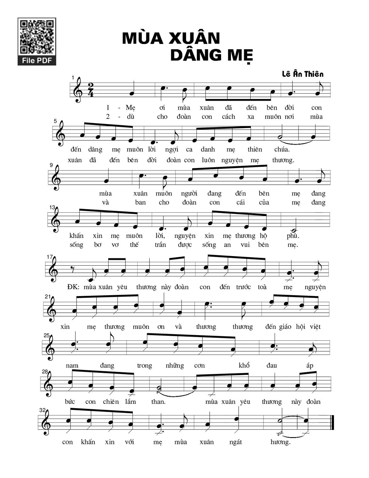 Trang 1 của Sheet nhạc PDF bài hát Mùa xuân dâng Mẹ - Lê Ân Thiên