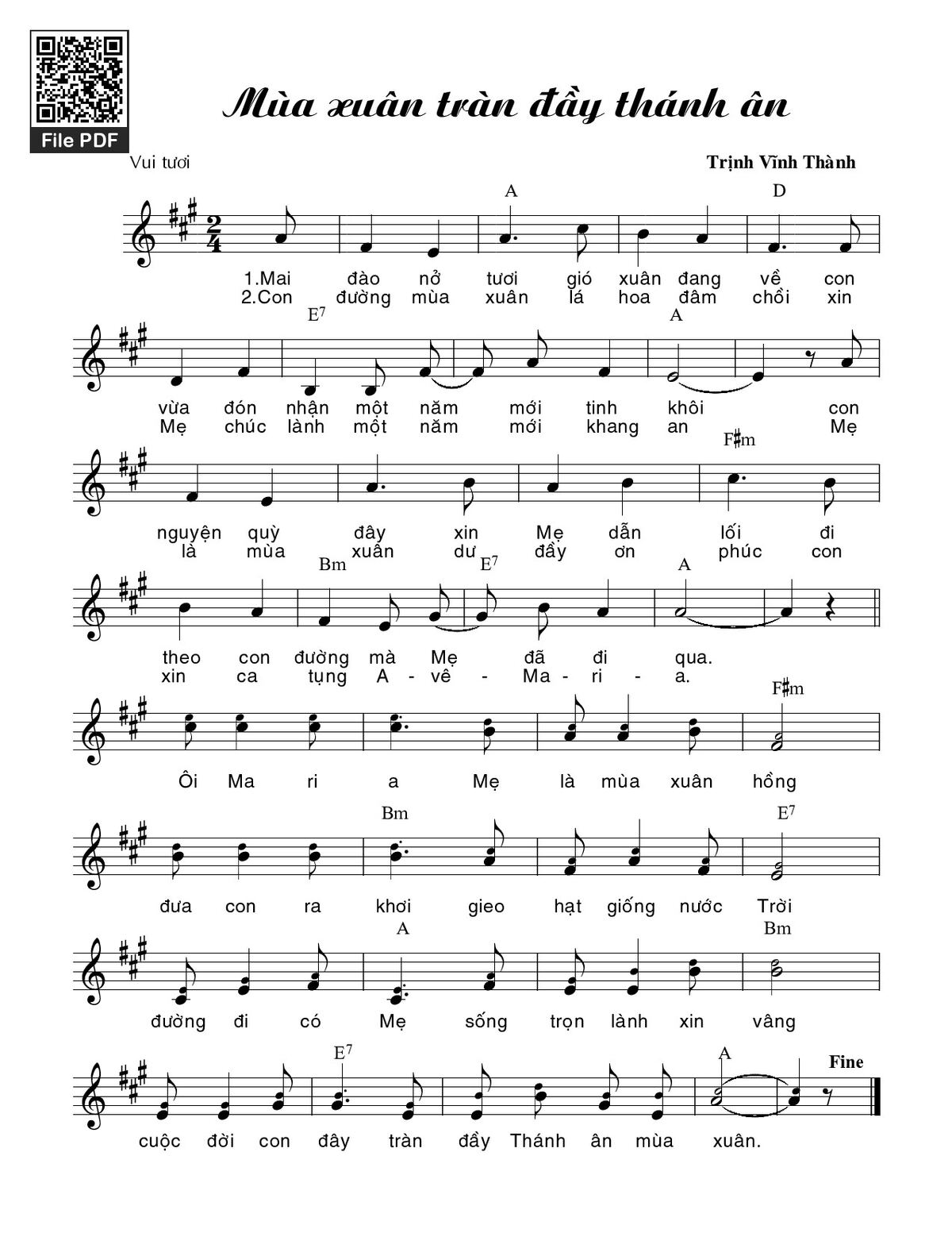 Sheet Mùa xuân tràn đầy thánh ân PDF, hợp âm