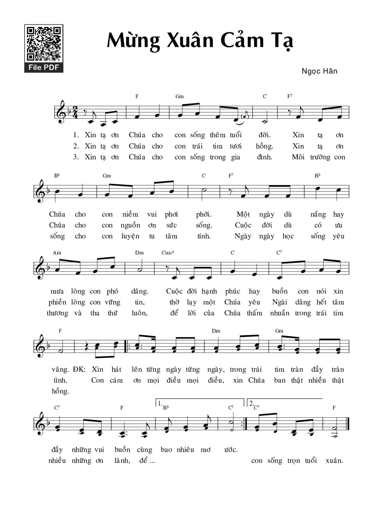 Sheet Mừng xuân cảm tạ PDF, hợp âm