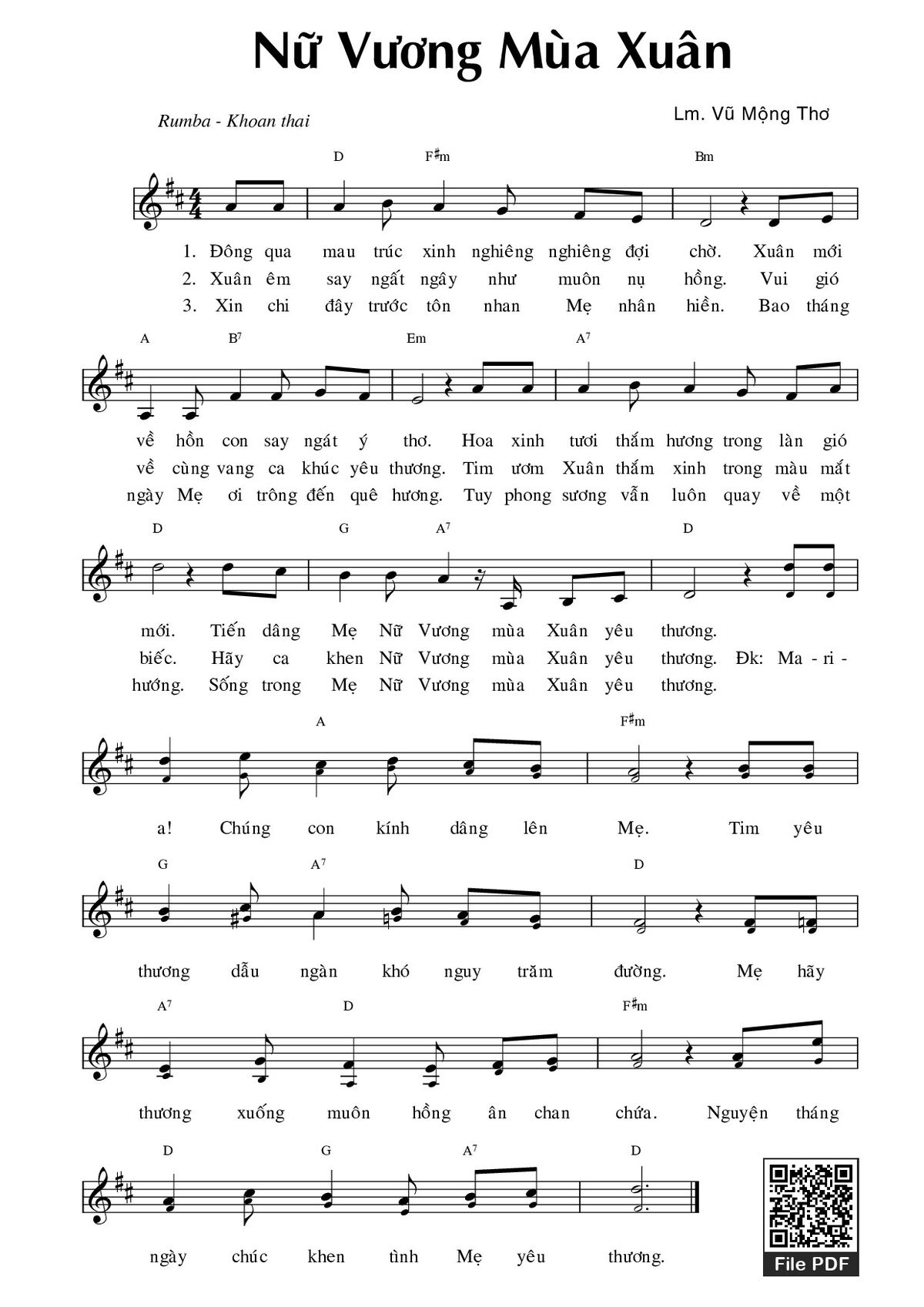 Sheet Nữ vương mùa xuân PDF (Vũ Mộng Thơ), hợp âm