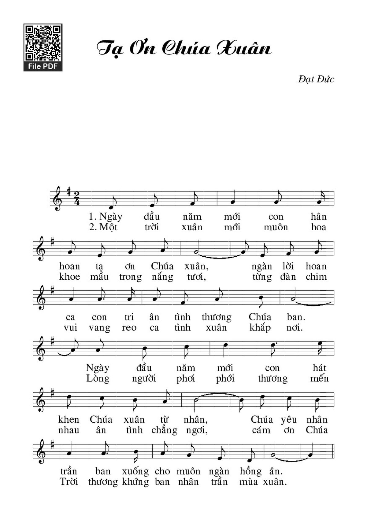 Trang 1 của Sheet nhạc PDF bài hát Tạ ơn Chúa Xuân - Đạt ĐứcTạ ơn Chúa XuânGiang Tâm