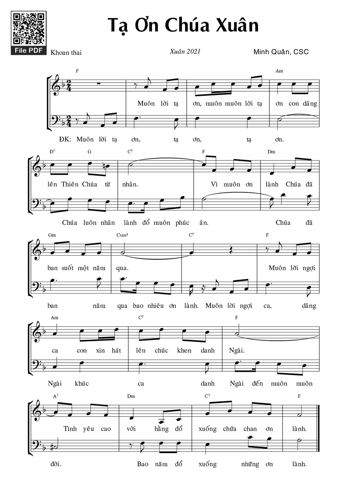 Sheet Tạ ơn Chúa Xuân PDF (Minh Quân), hợp âm