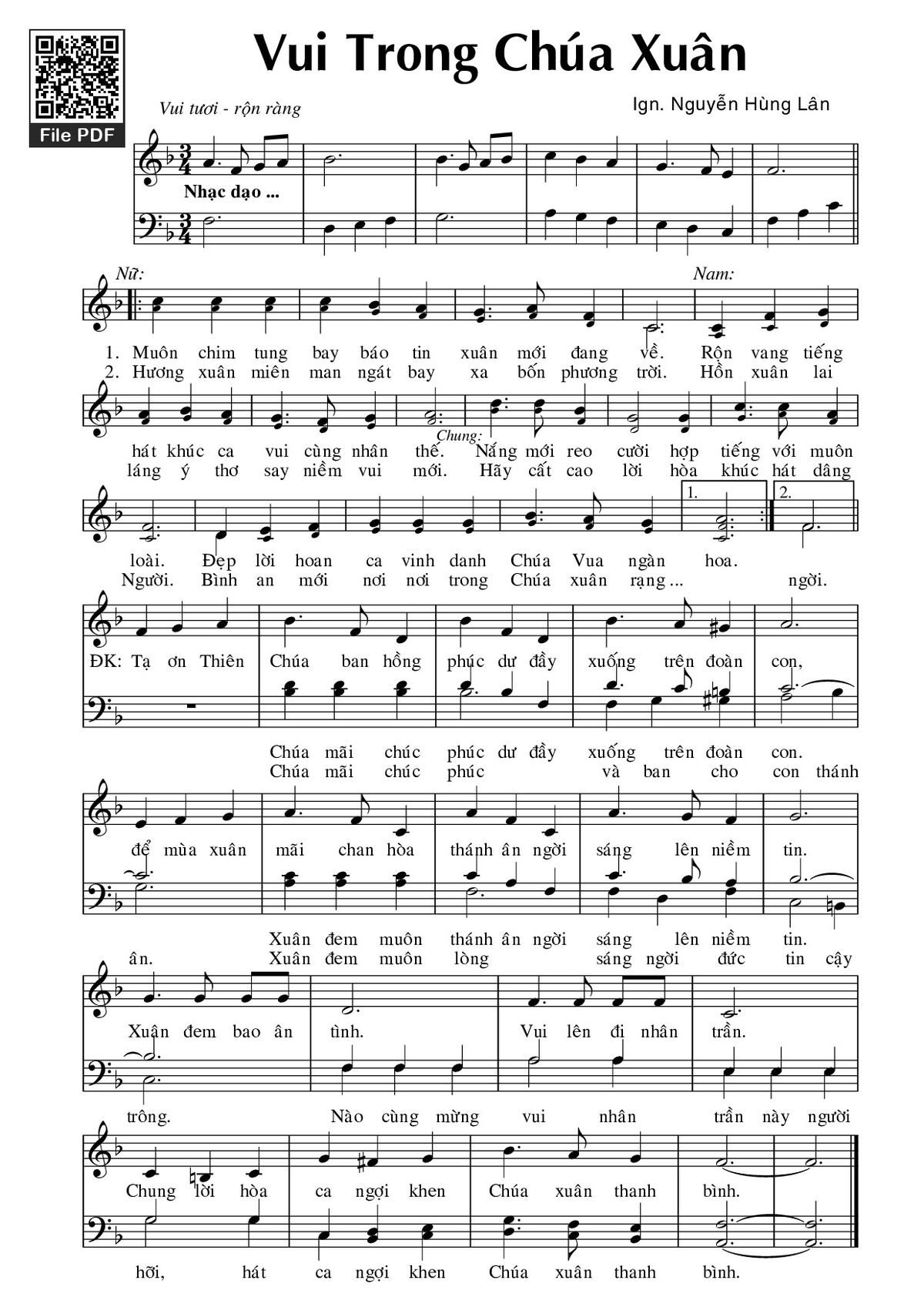 Trang 1 của Sheet nhạc PDF bài hát Vui trong Chúa Xuân - Nguyễn Hùng Lân