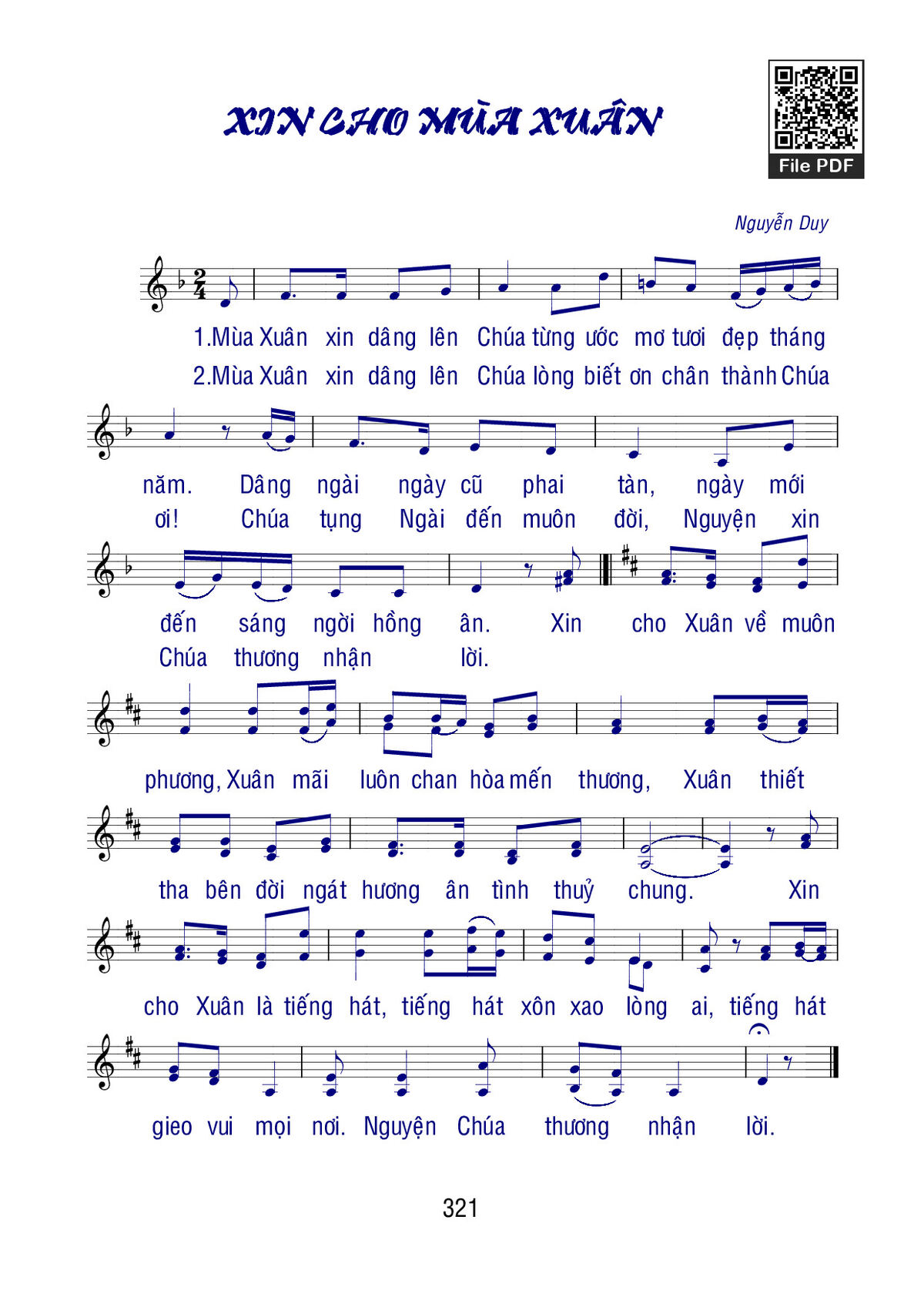Trang 1 của Sheet nhạc PDF bài hát Xin cho mùa xuân - Nguyễn Duy
