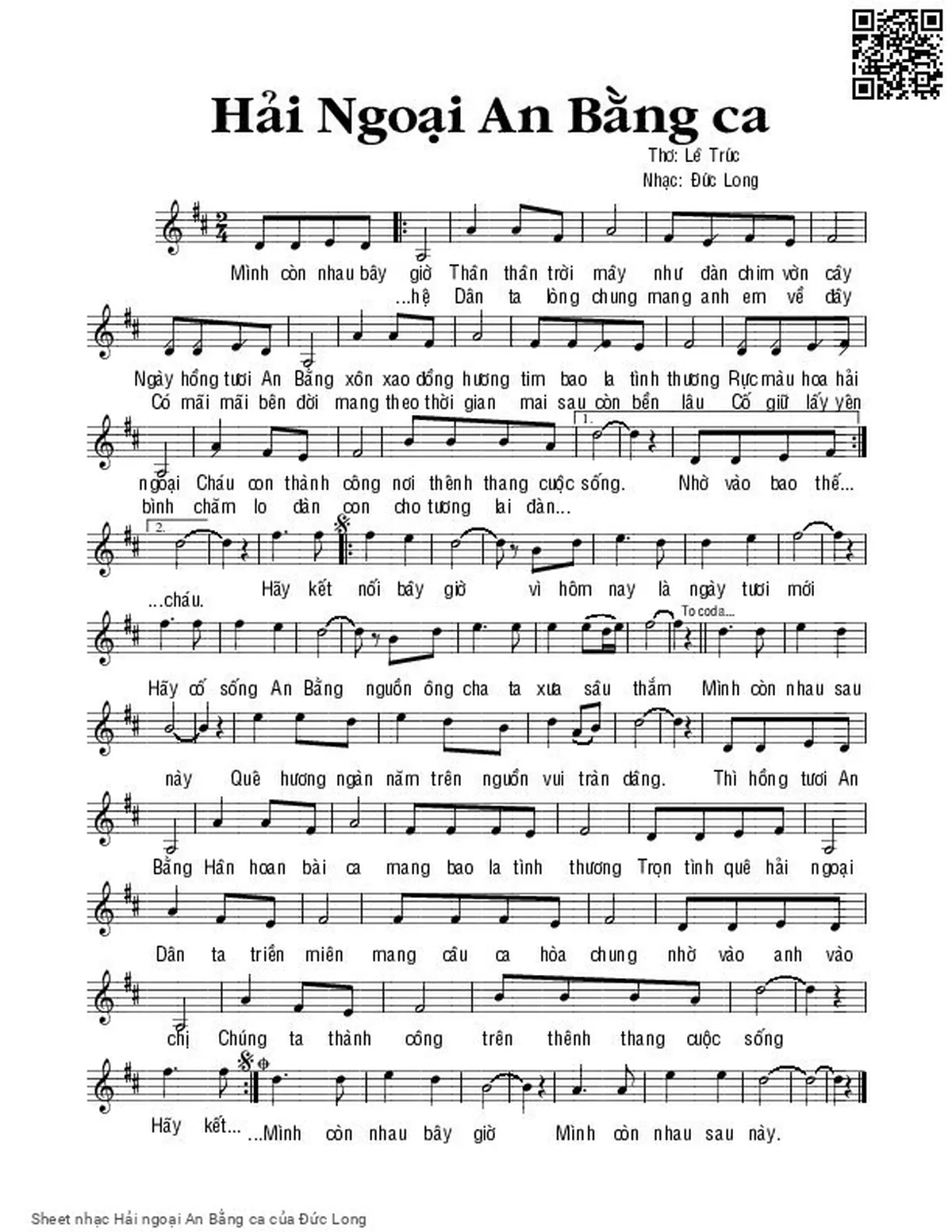 Phần nghe hát Hải ngoại An Bằng ca (Đức Long) được nhúng từ Youtube, Musescore hoặc link ngoài và chịu sự kiểm soát bản quyền của bên thứ ba đó, vì vậy có thể bị xóa hoặc chèn quảng cáo bất kỳ lúc nào. Nếu bạn không nghe - xem được ca sĩ hát tức là đã bị Youtube hoặc Musescore kiểm soát.