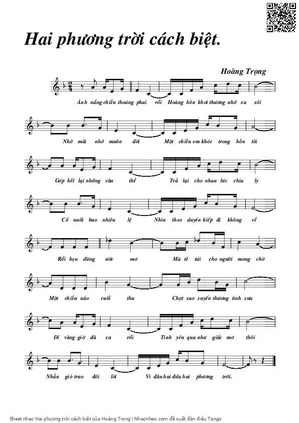 Hoàng Trọng Ánh nắng chiều thoáng phai rồi Hoàng hôn khơi thương nhớ tới xa xôi [PDF] [Sheet] [Lời H.A] [Mp4/Midi]