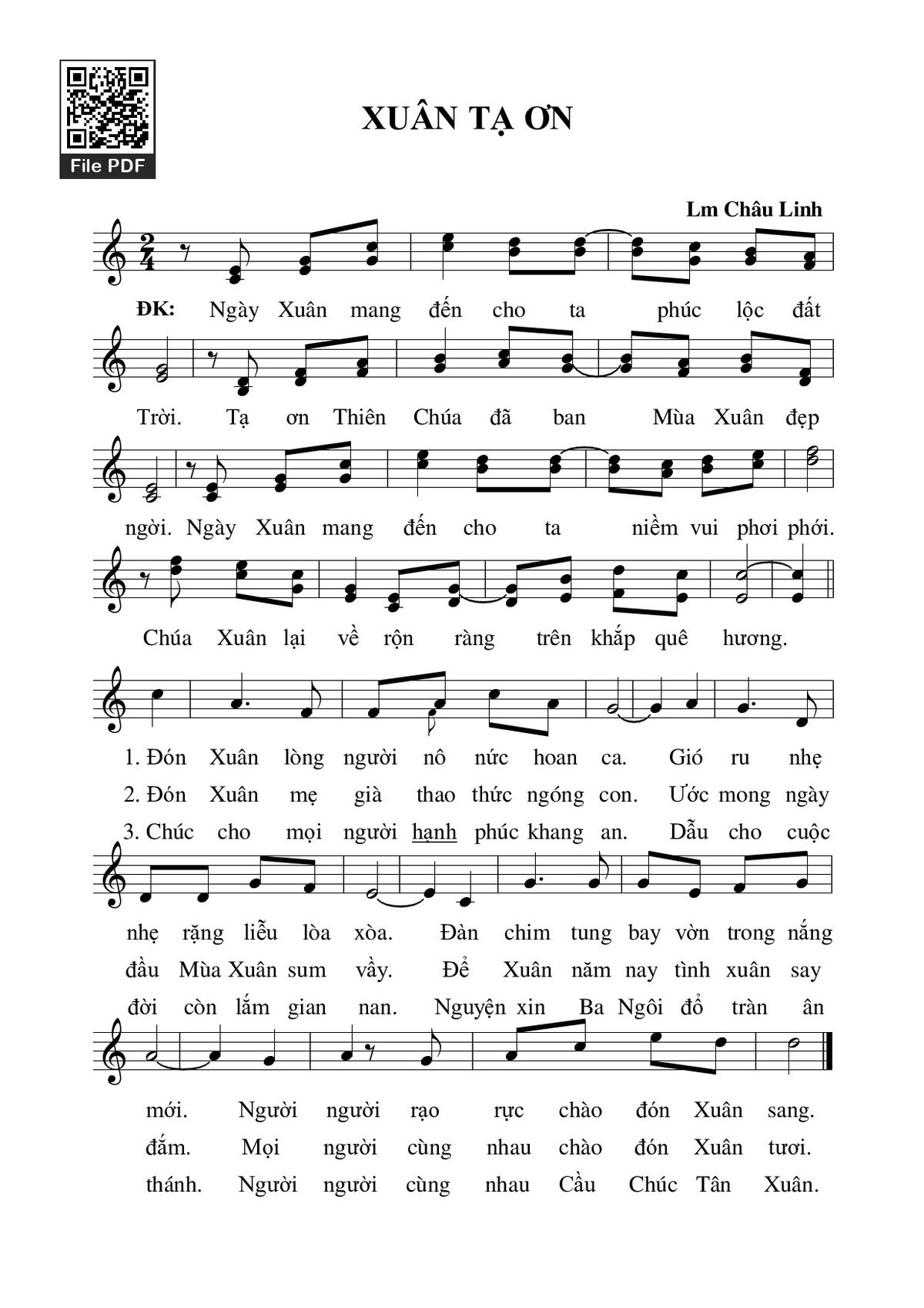 Sheet Xuân tạ ơn PDF (Châu Linh), hợp âm