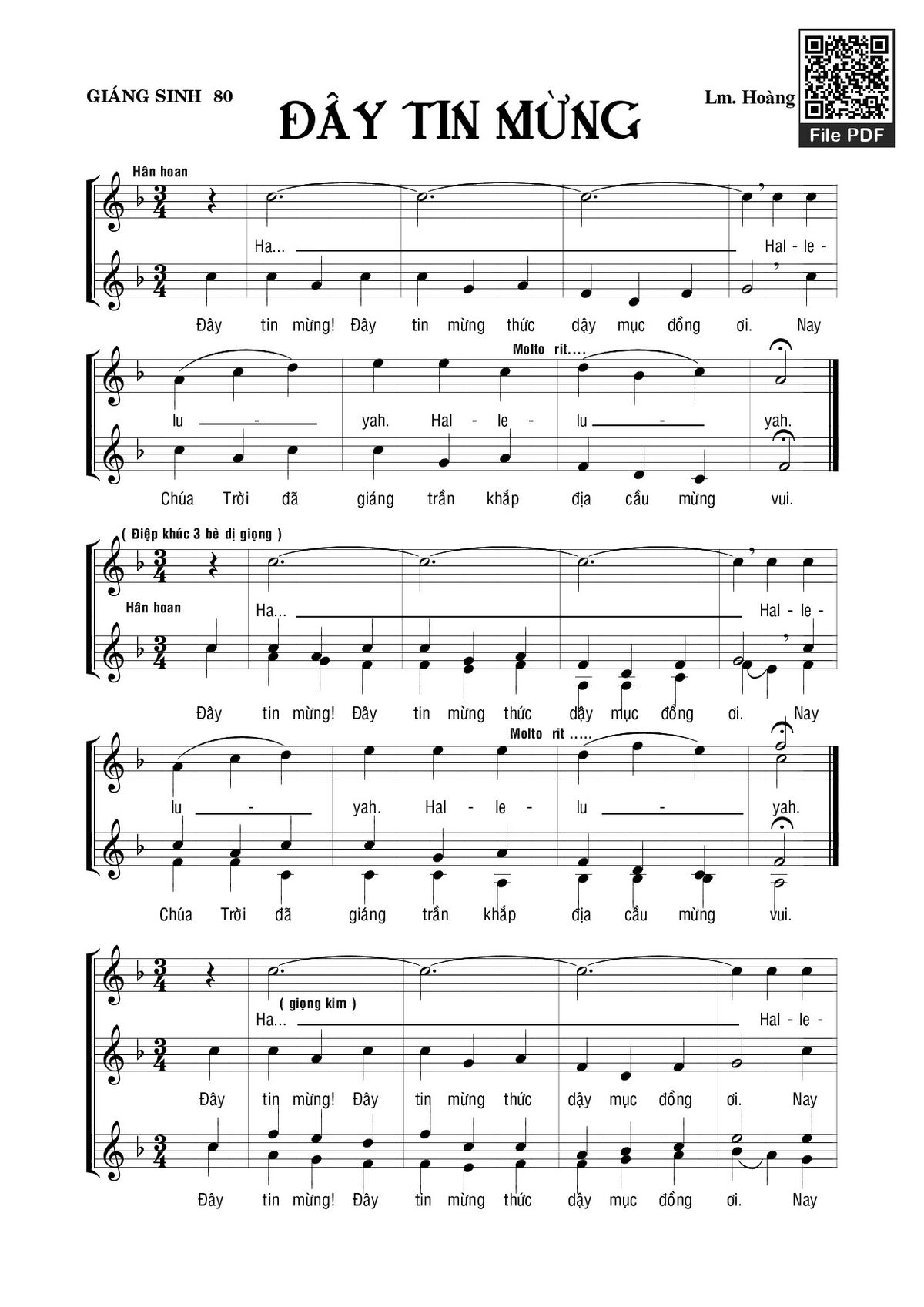 Đây Tin Mừng! Đây Tin Mừng thức dậy mục đồng ơi! Nay Chúa Trời đã giáng trần khắp địa cầu mừng vui.