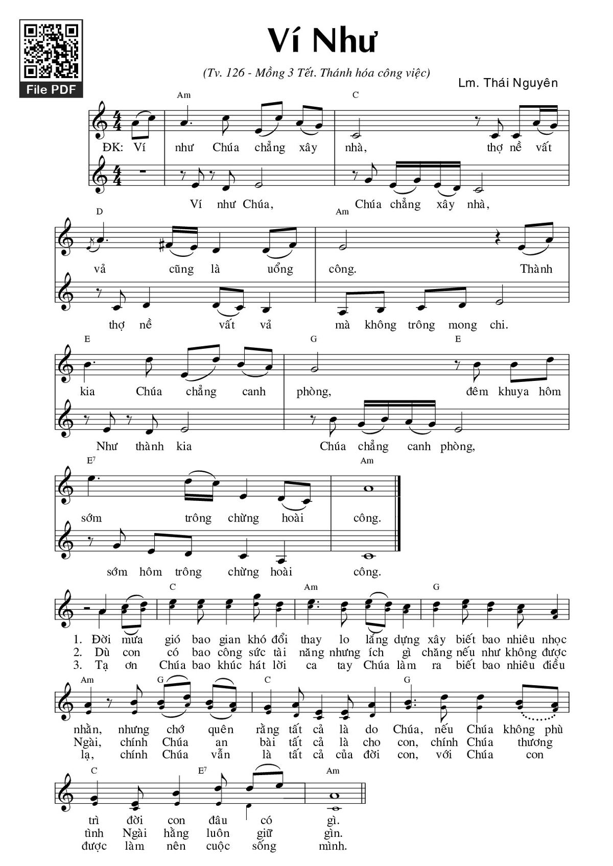 Thái Nguyên Ví như Chúa cgr xây nhà thợ nề vất vả cũng là uổng công [PDF] [Sheet] [Lời H.A] [Mp4/Midi]