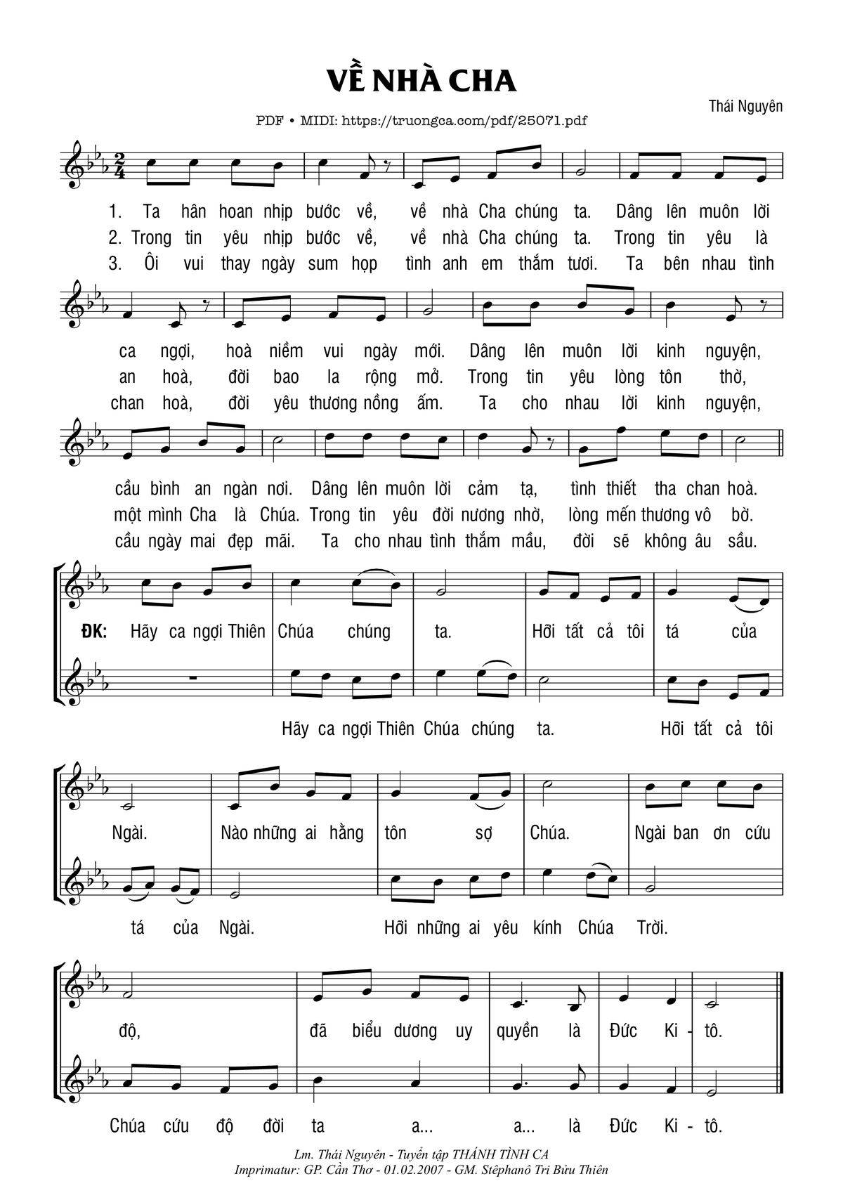Thái Nguyên Ta hân hoan nhịp bước về về nhà Cha chúng ta [PDF] [Sheet] [Lời H.A] [Mp4/Midi]