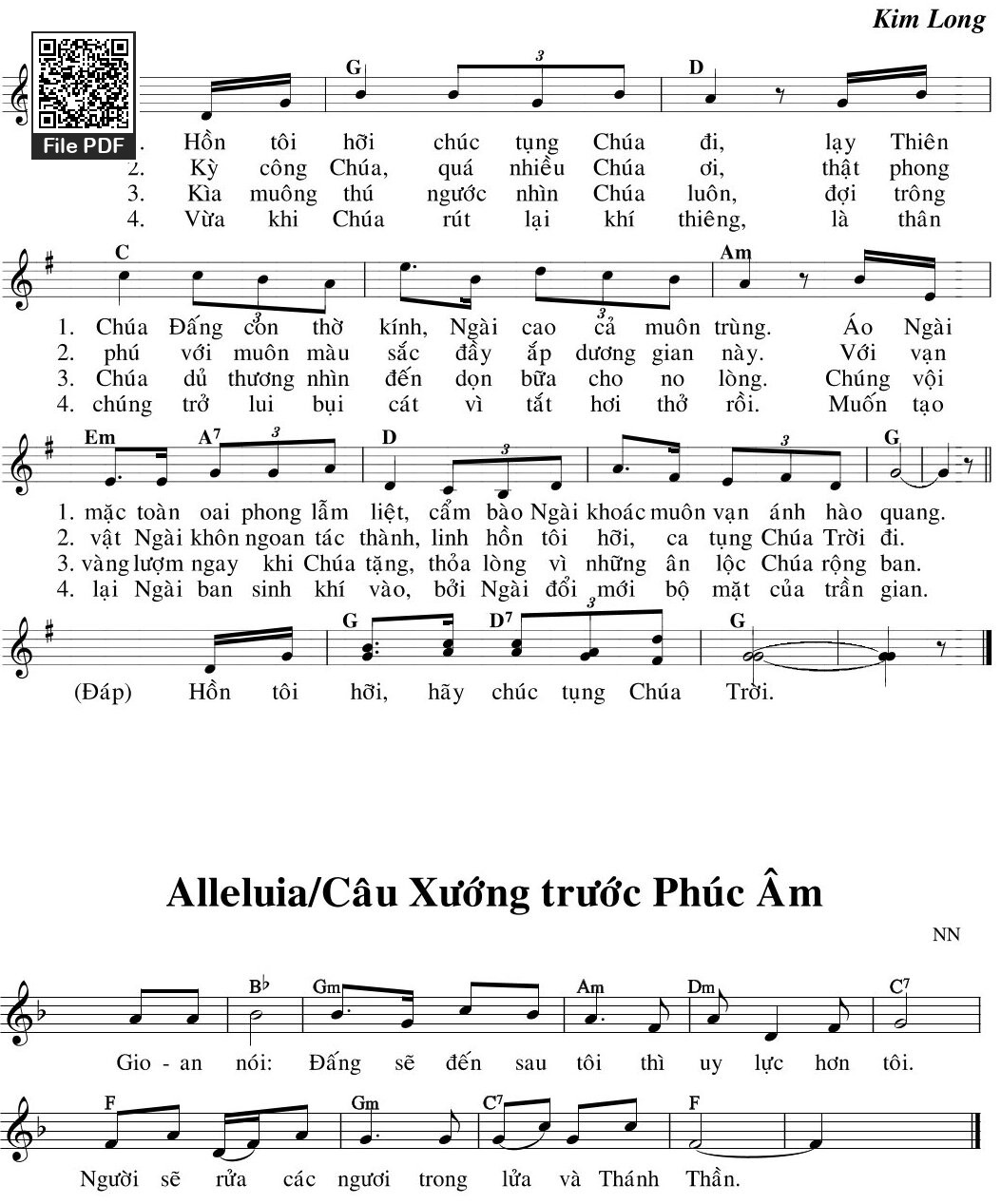 Kim Long Thể hiện Duy Hạnh Hồn tôi hỡi chúc tụng Chúa đi [PDF] [Sheet] [Lời H.A] [Mp4/Midi]