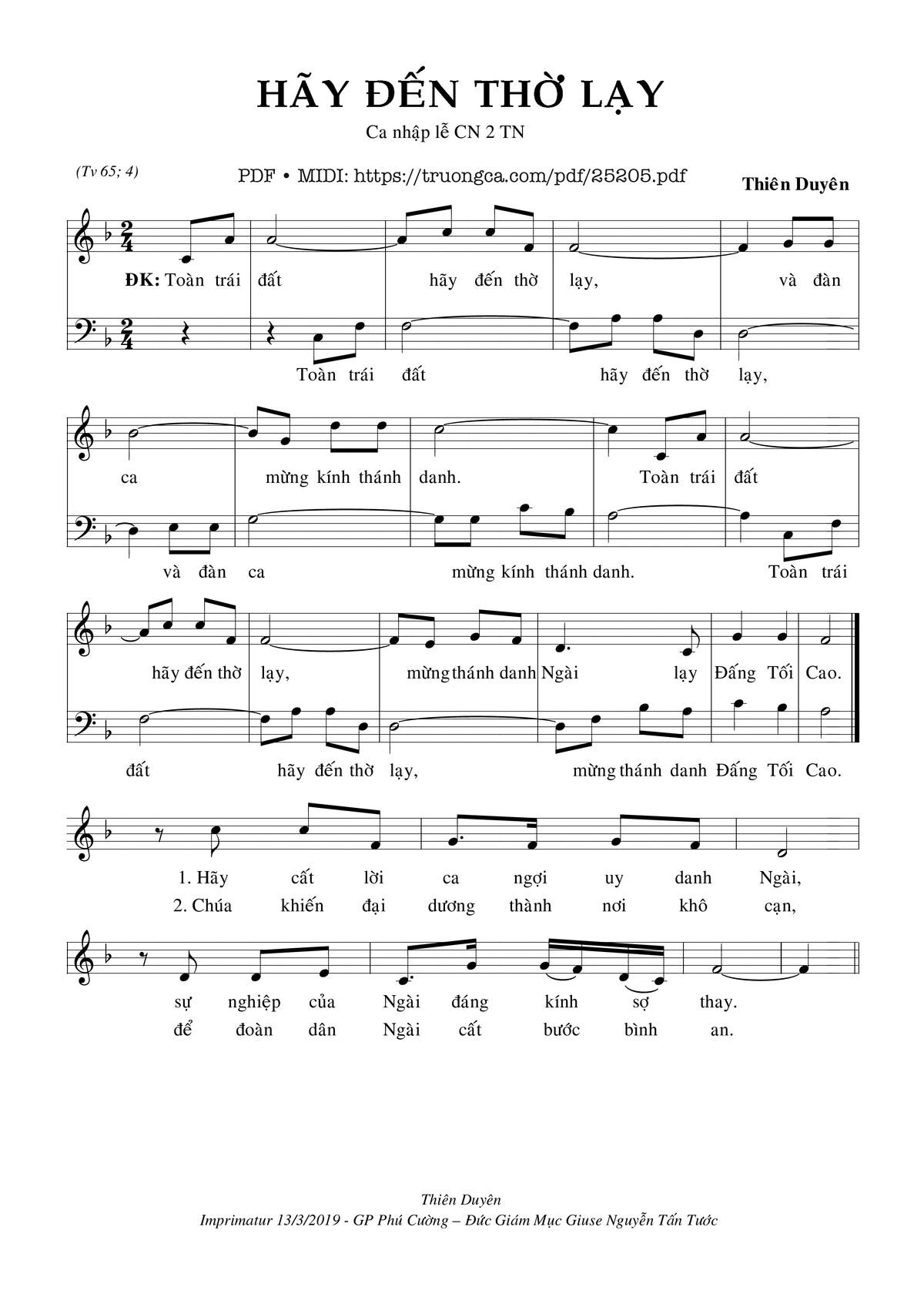 Thiên Duyên Toàn trái đất hãy đến thờ lạy và đàn ca mừng kính thánh danh [PDF] [Sheet] [Lời H.A] [Mp4/Midi]