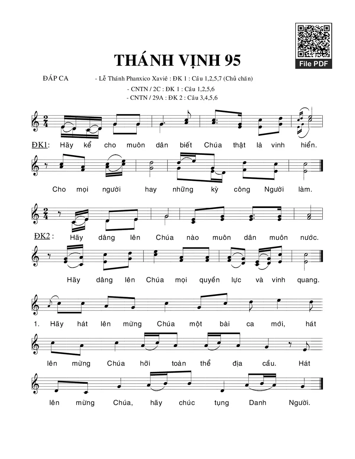 Các sheet PDF cùng tên Thánh Vịnh 95, Chúa Nhật 2C Thường Niên: