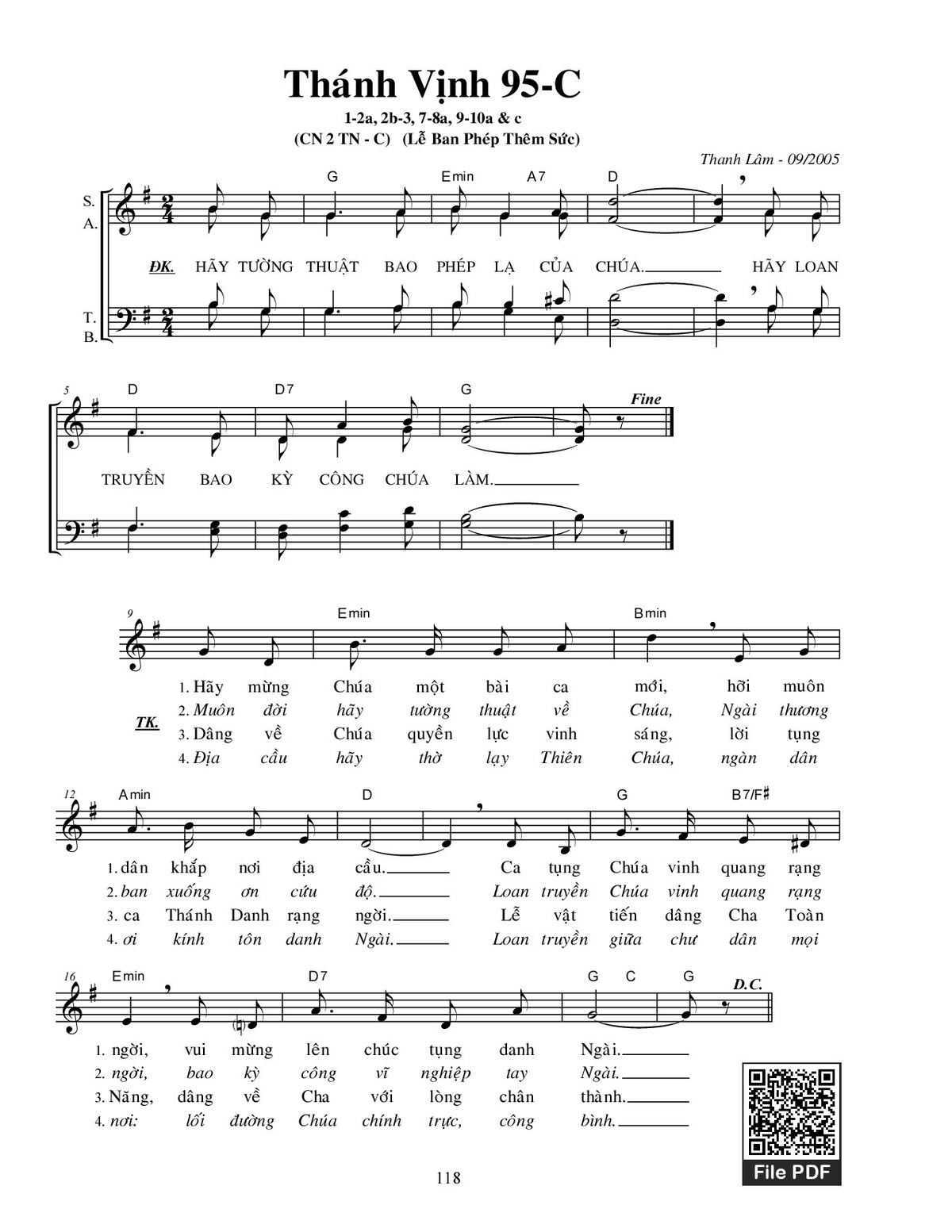 Các sheet PDF cùng tên Thánh Vịnh 95, Chúa Nhật 2C Thường Niên: