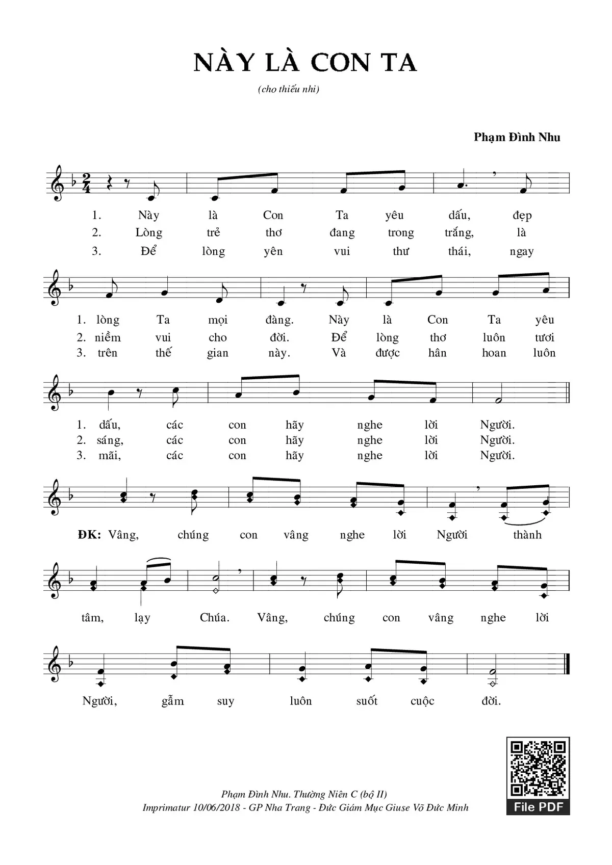 Phạm Đình Nhu Này là Con Ta yêu dấu đẹp lòng Ta mọi đàng [PDF] [Sheet] [Lời H.A] [Mp4/Midi]