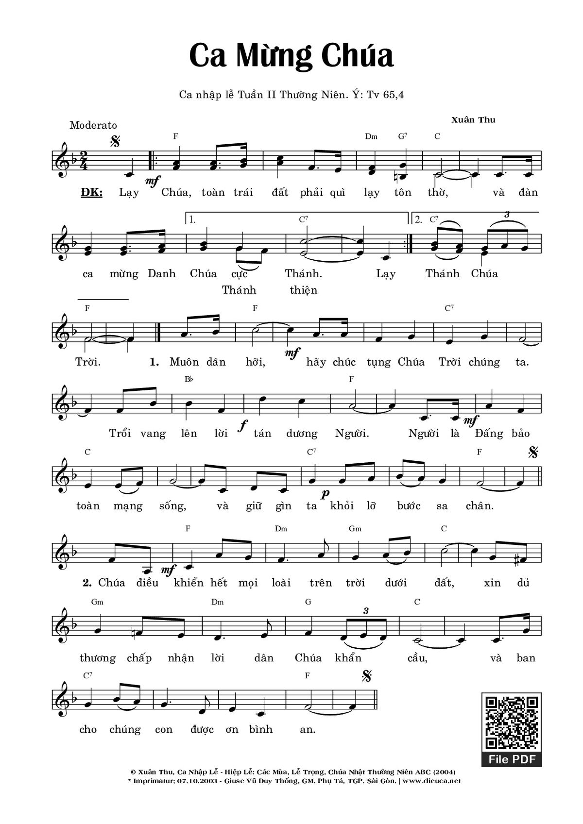 Các sheet PDF tương tự Thánh Vịnh 65, Ca Mừng Chúa: