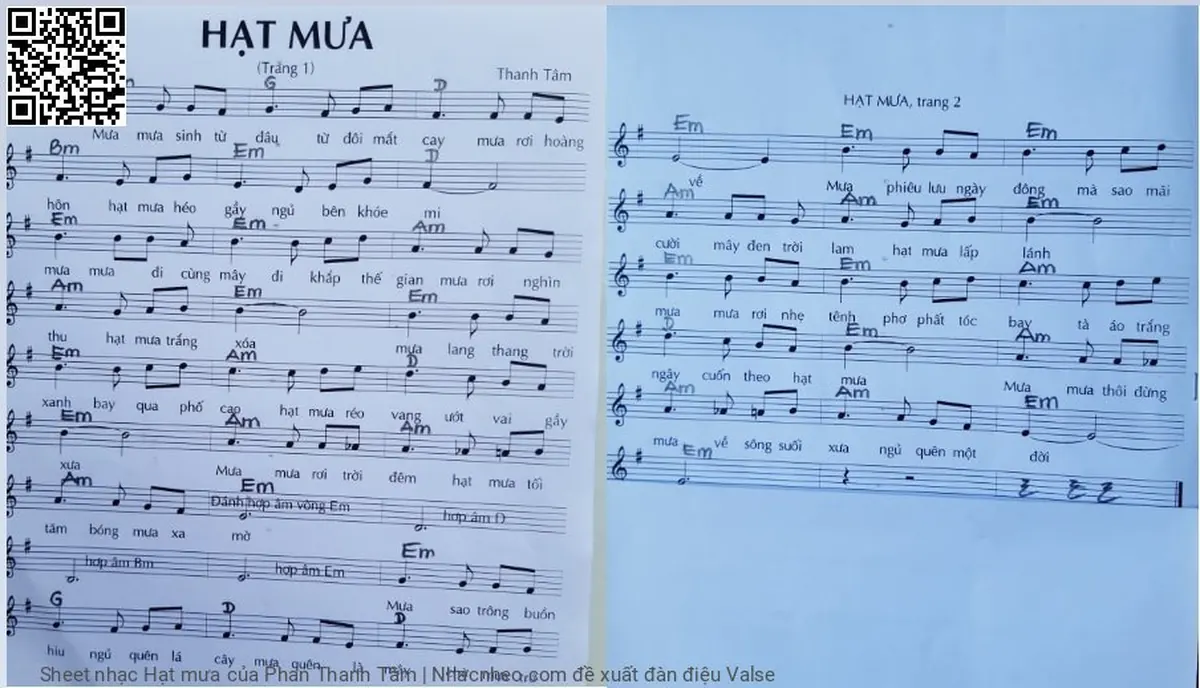 Chọn nút dấu + để tăng tông lên nửa cung, nút dấu - để giảm tông xuống nửa cung. Rê chuột vào hợp âm để xem các thế bấm hợp âm của bài hát Hạt mưa.