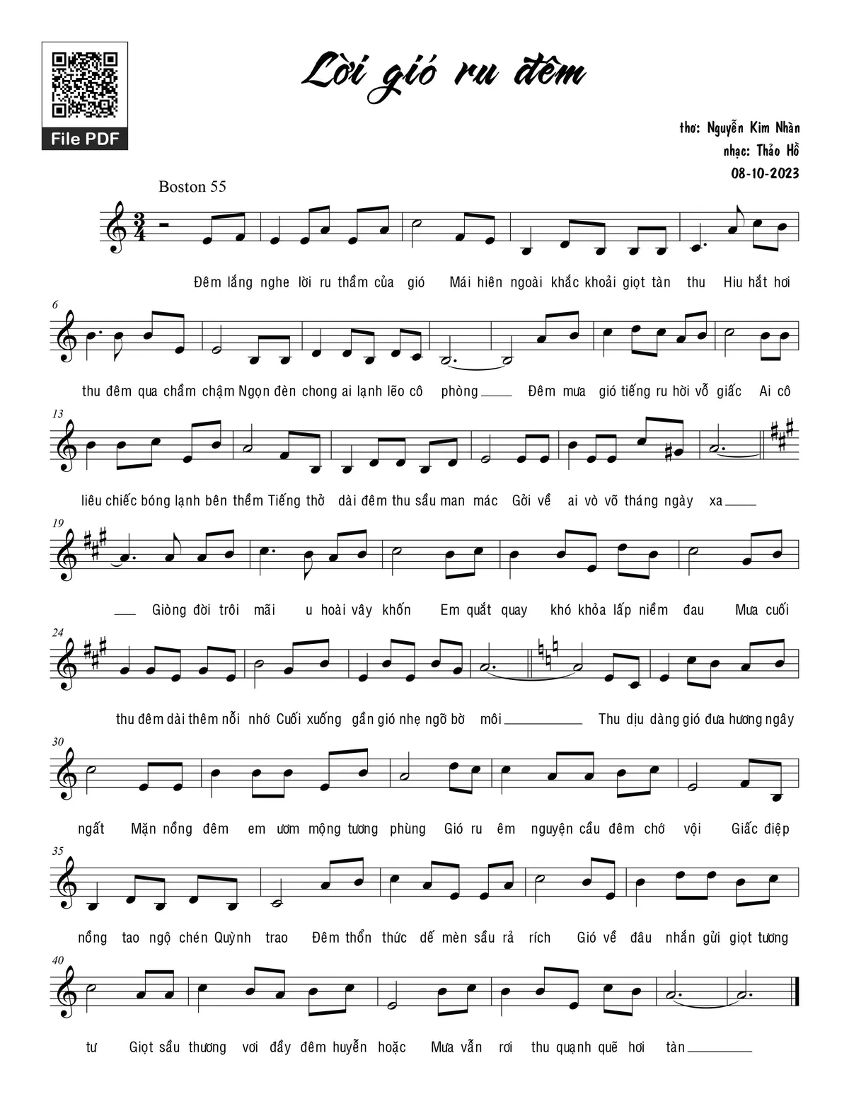Thảo Hồ Đêm lắng nghe lời ru thầm của gió Mái hiên ngoài khắc khoải giọt tàn thu [PDF] [Sheet] [Lời H.A] [Mp4/Midi]